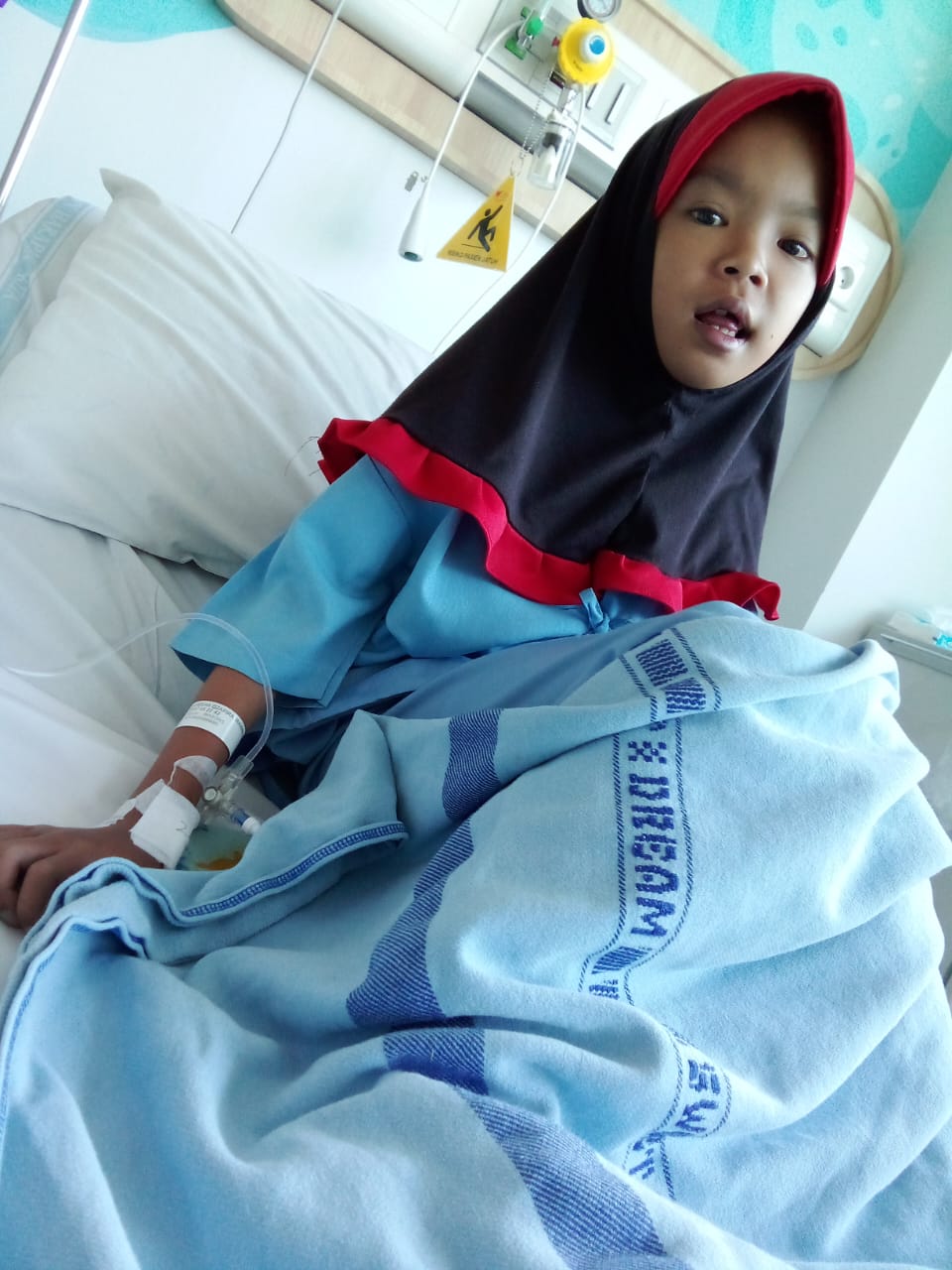 Anakku, Ayesha Dzafira (9 thn), hampir kehilangan nyawa karena jantungnya melemah! Saat itu, anakku harus menjalani operasi tahap pertama pembuatan lubang untuk tempat Buang Air Besar (BAB) akibat lahir tanpa anus.