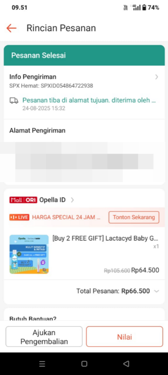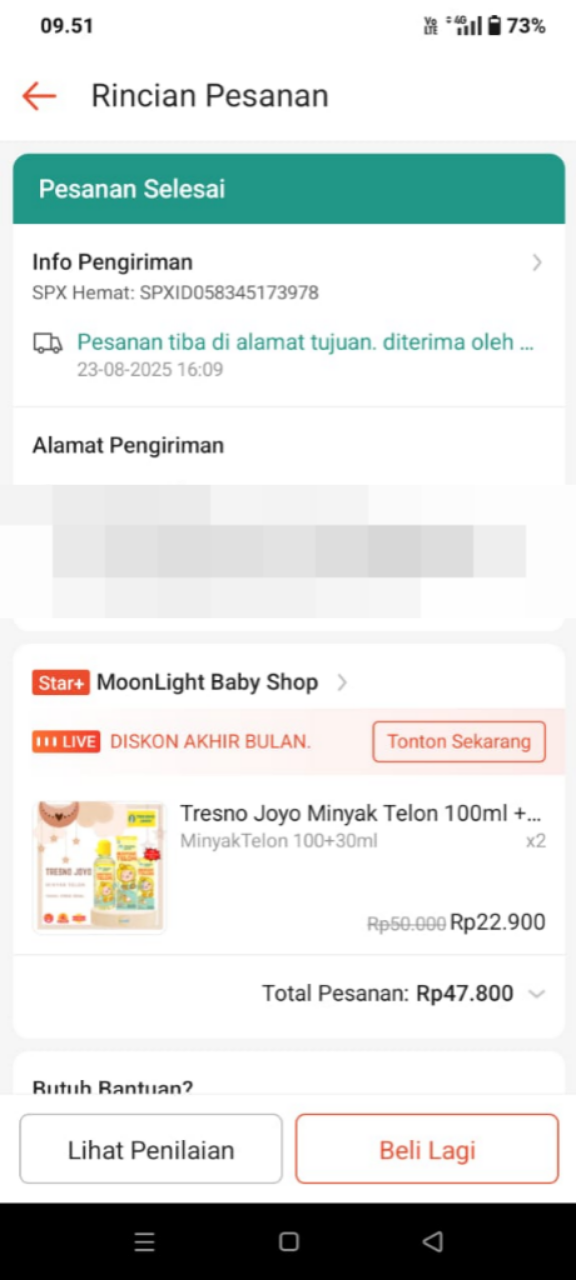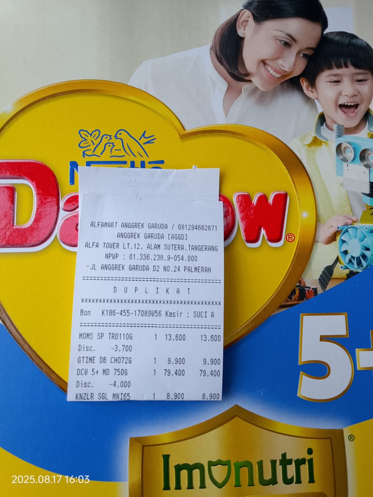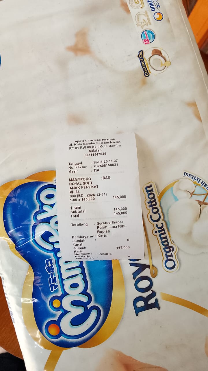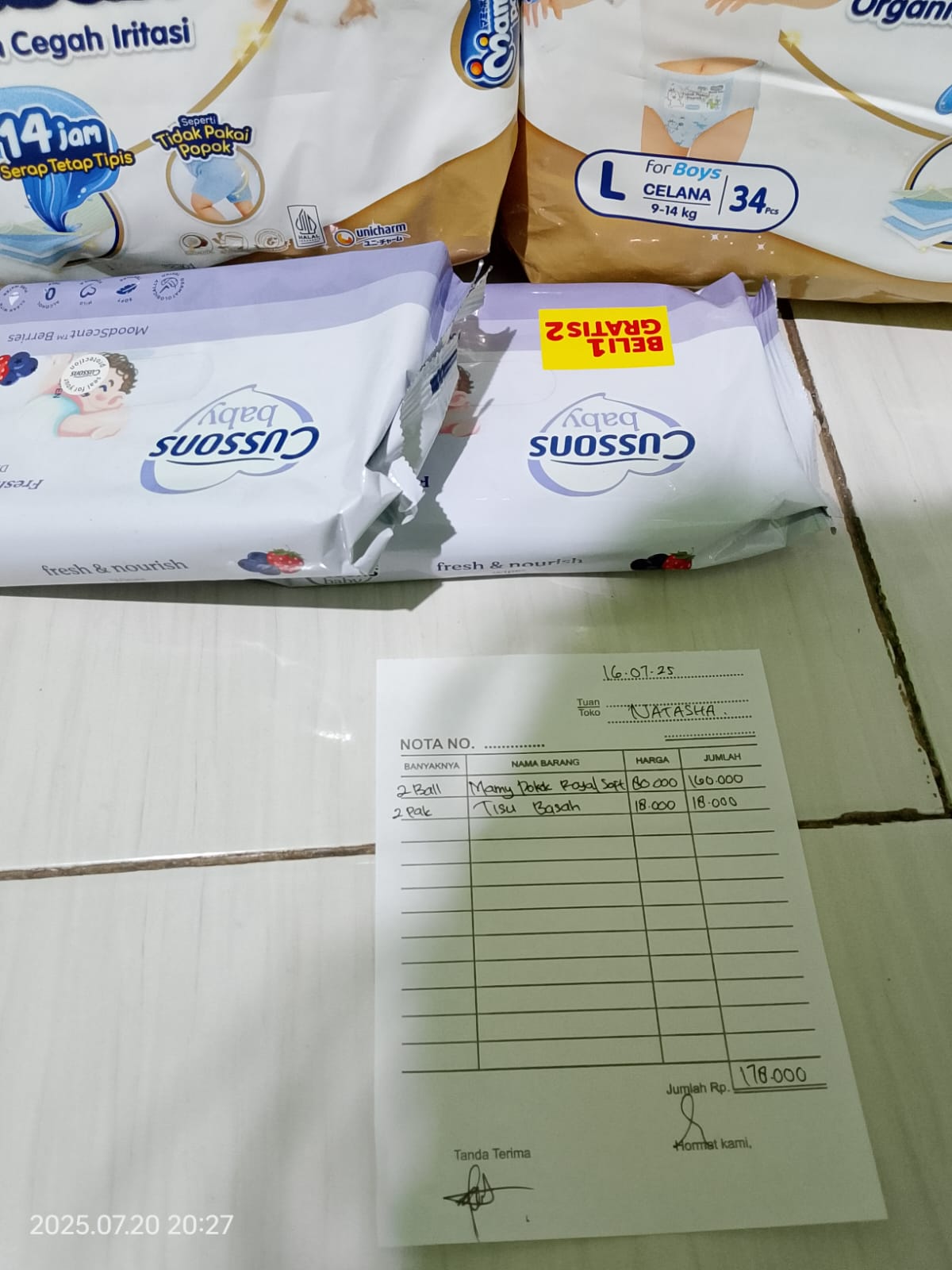 Dana digunakan untuk 1. Pampers Mamy Poko 3ball Rp315.000 2. Tisu Basah 2pcs Rp40.000 3. Tisu kering 2pcs Rp40.000 4. Minyak telon Rp40.000 5. Sabun Cair lactacid Rp60.000 6. Susu Dancow 5+ 725g Rp105.0002025-08-18 09:19:47