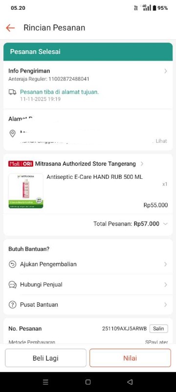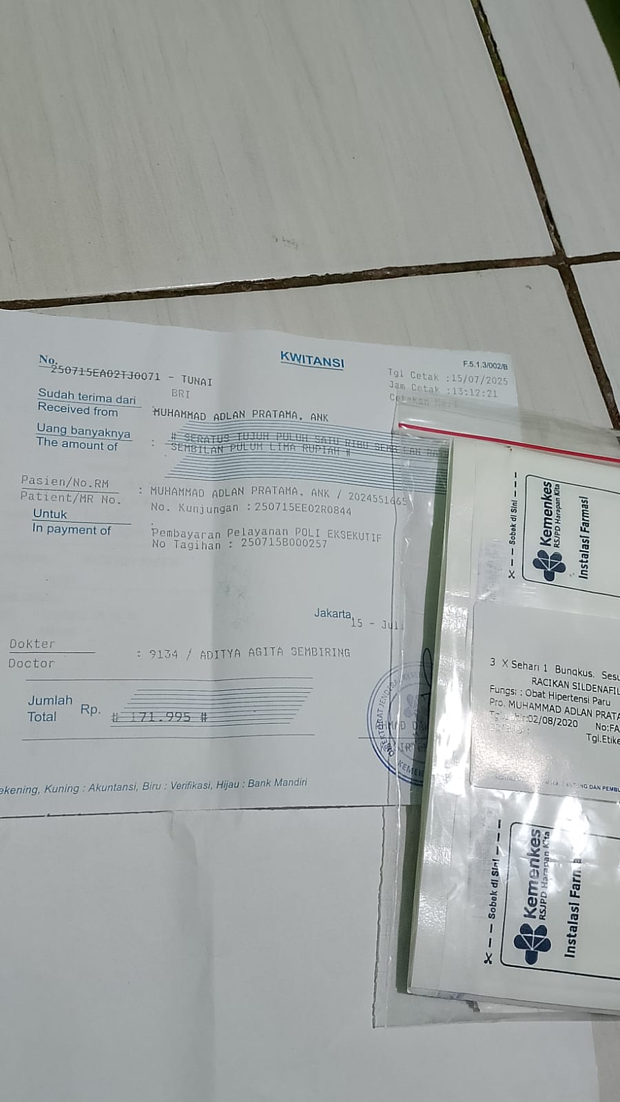 Dana digunakan untuk 1.Obat sildenafil Rp150.000 2.Pempes mamypoko Rp65.000 x 2 ball= Rp130.000 3.Tisu basah Rp10.000 x 2 pcs= Rp20.0002025-06-19 09:20:24