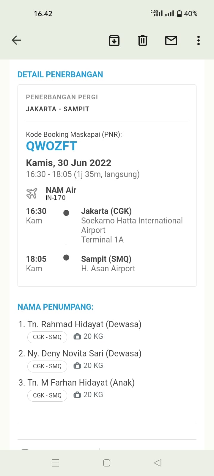 Dana dari TemanBaik kami gunakan untuk menambah dan menggantikan biaya pesawat pulang dari Jakarta ke Sampit pada bulan Juni lalu.