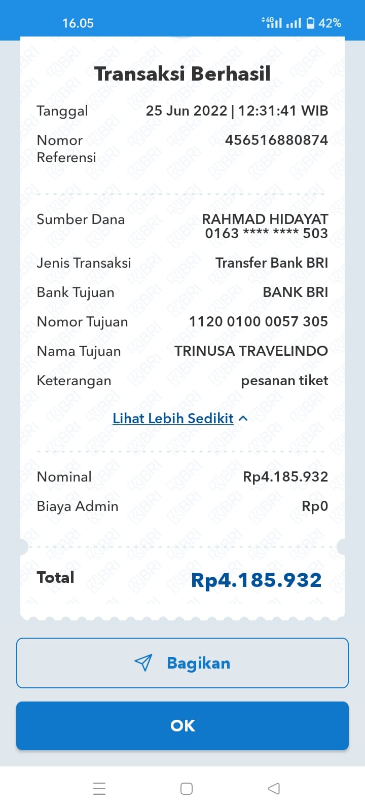 Ke rekening ****98407503 a/n Rahmad Hidayat
