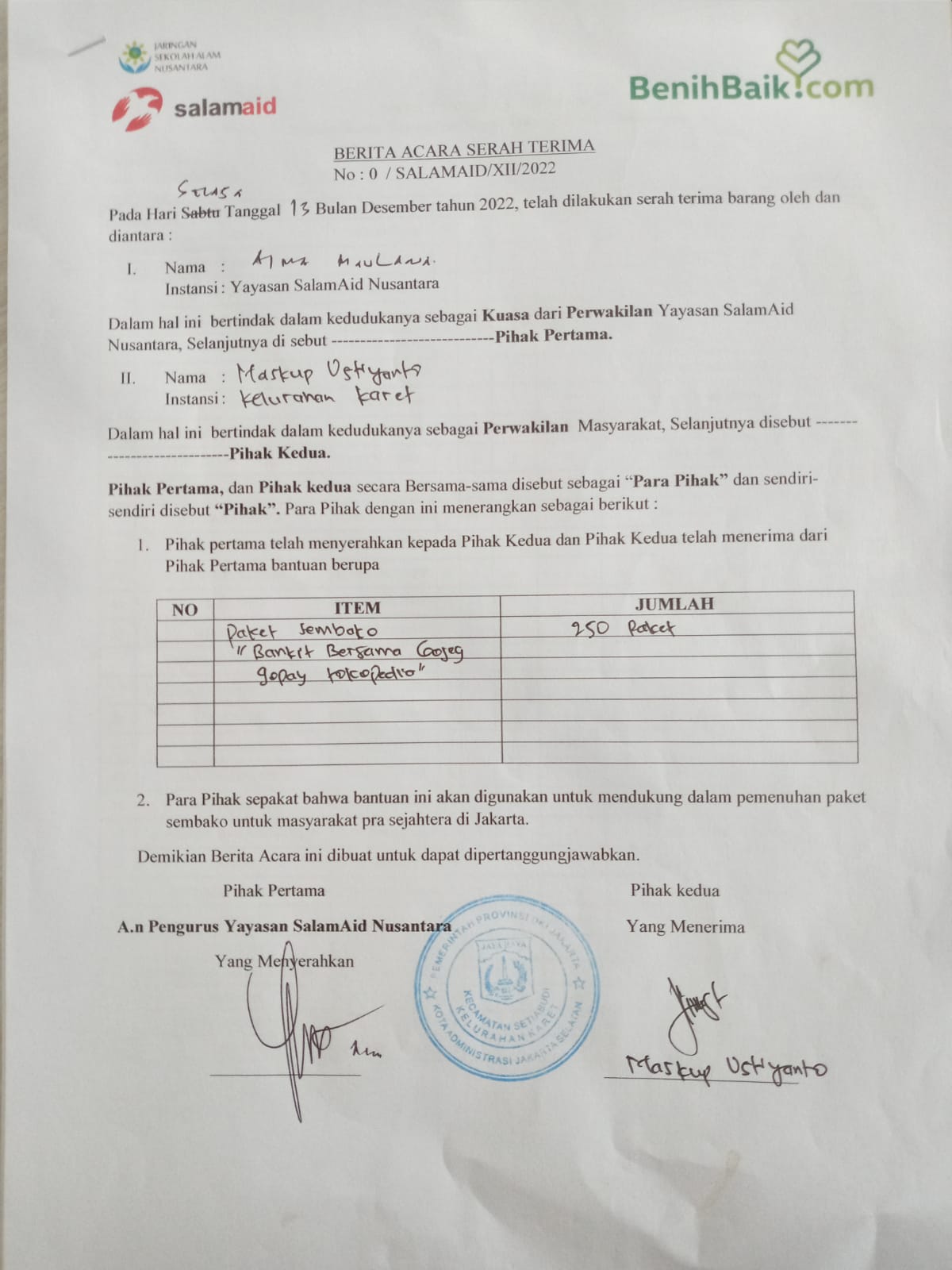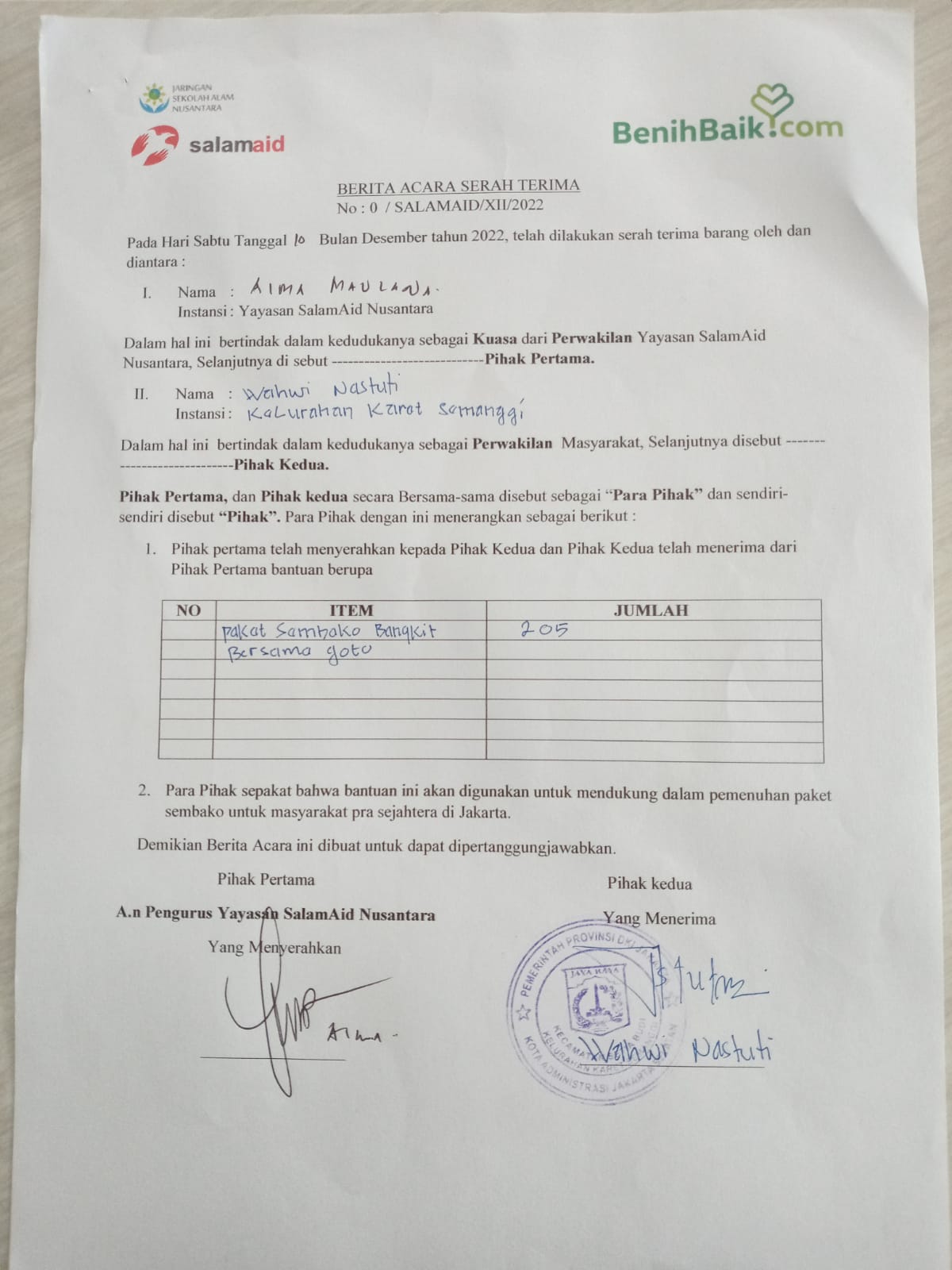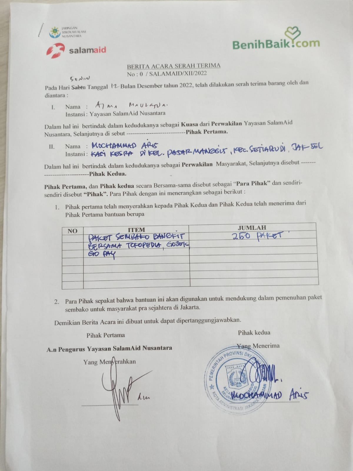 Terimakasih banyak atas bantuan yang TemanBaik berikan. Semoga melalui bantuan ini, masyarakat prasejahtera di DKI Jakarta bisa memenuhi kebutuhan pokok sehari-hari untuk beberapa jangka waktu kedepan ya, amin.