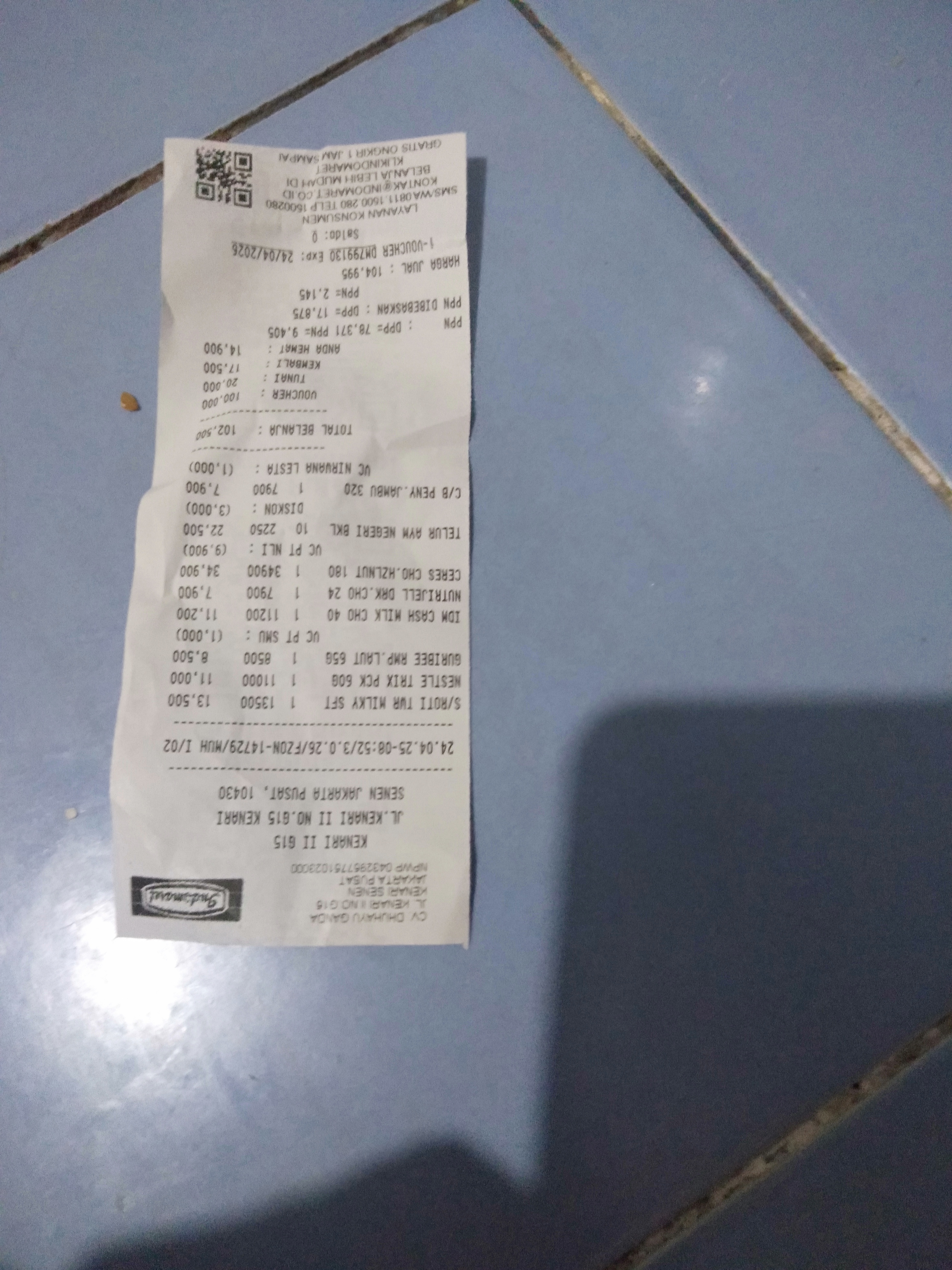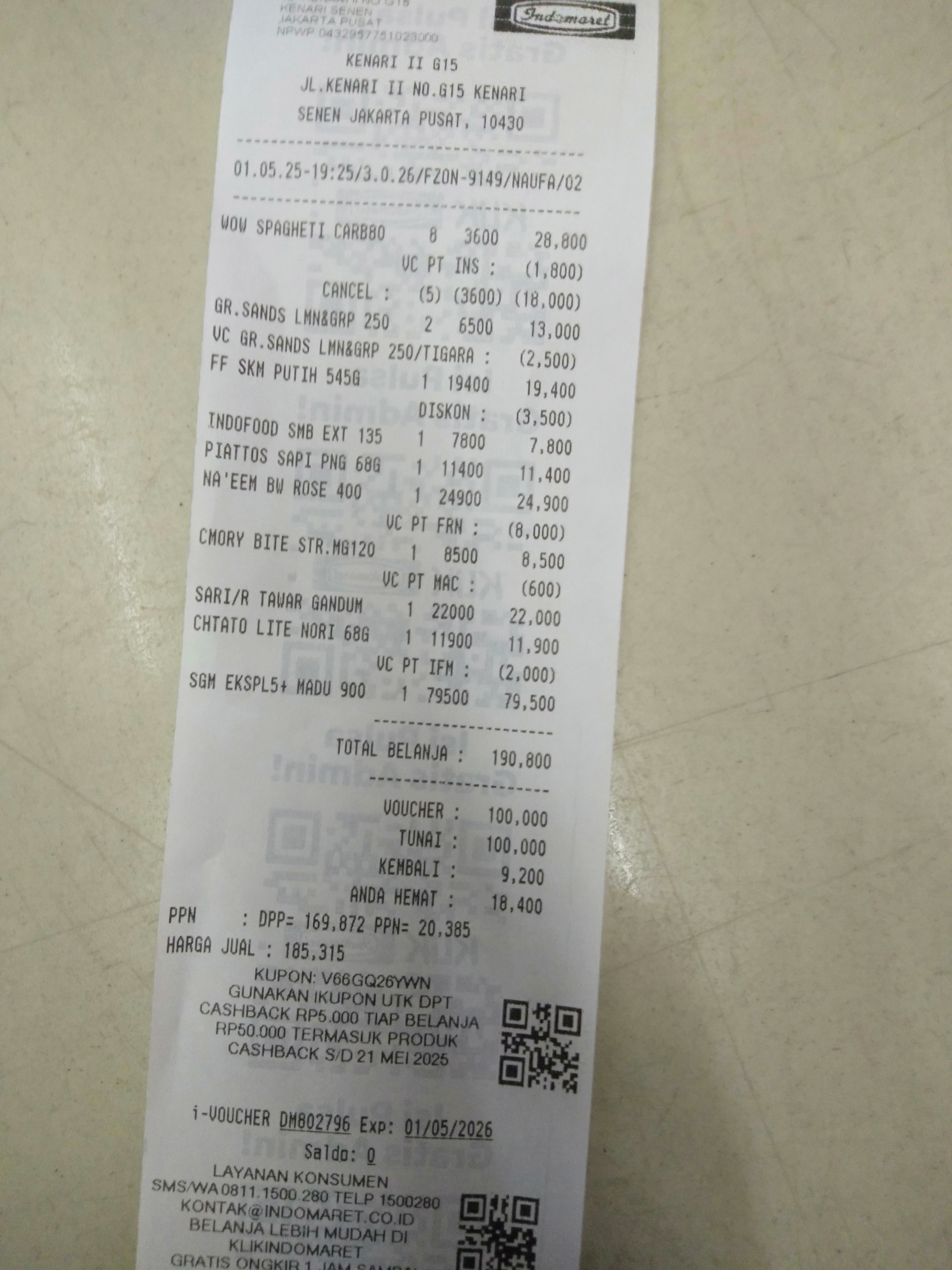 Dana digunakan untuk 1. Nipe drop Rp100.500 2. Susu Dancow Rp90.000/750 gr 3. Roti tawar sari roti milky Rp21.000 4. Kurma Rp30.000/500gr 5. Jeruk Rp20.000/kg2024-03-12 16:31:18