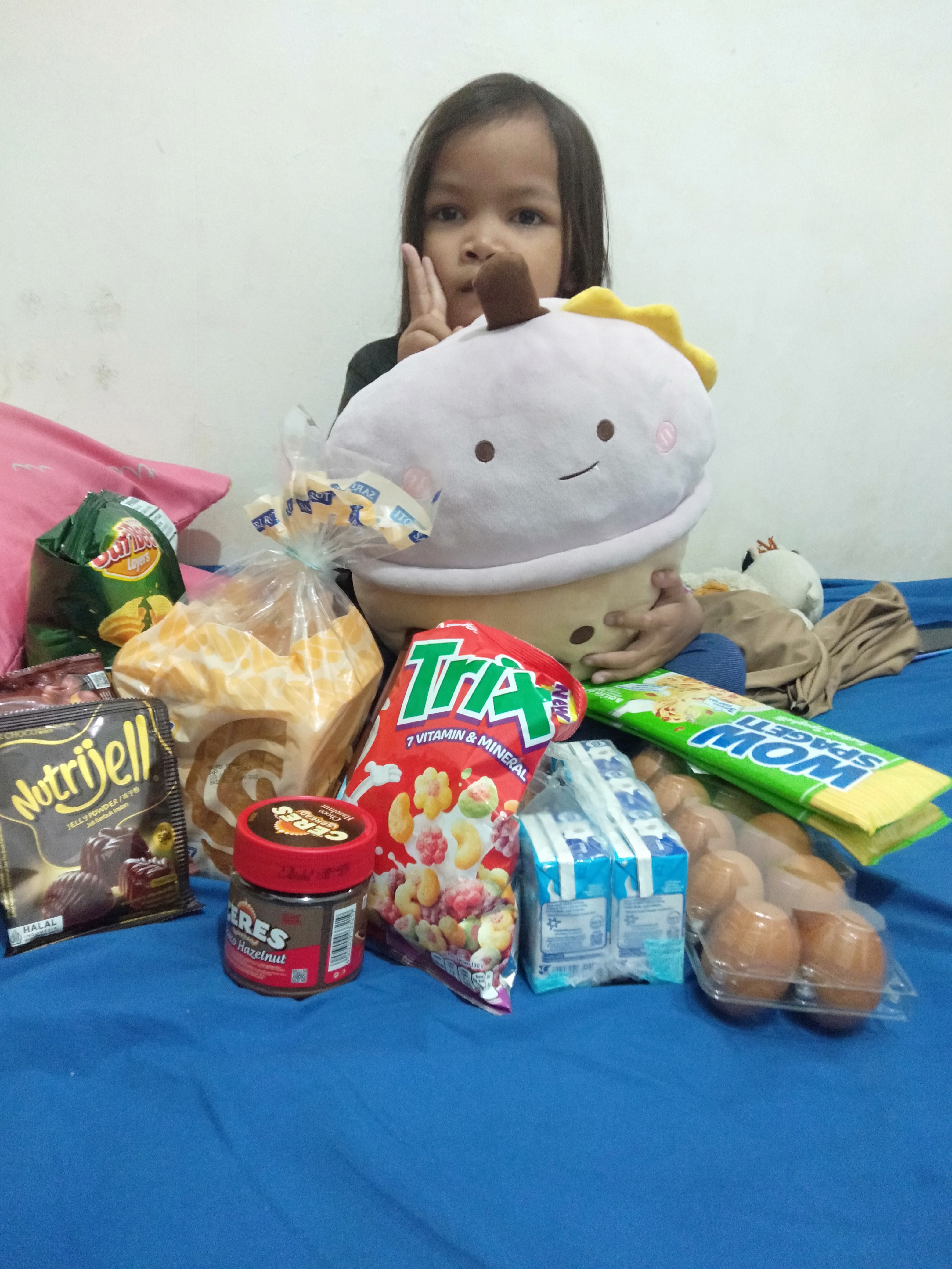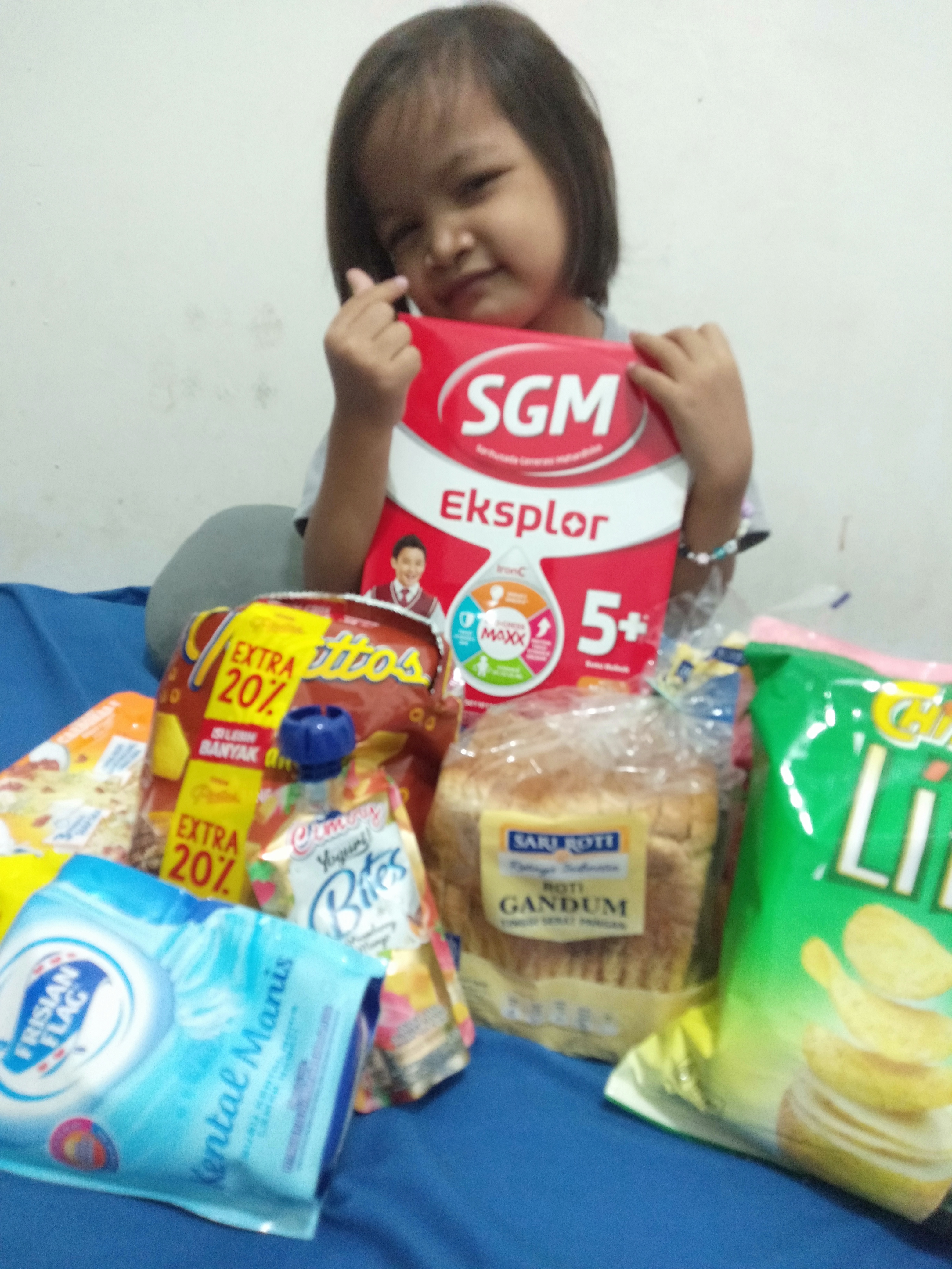 Dana bantuan dari #TemanBaik telah kami gunakan untuk membeli roti, buah, susu kental manis, dan susu.