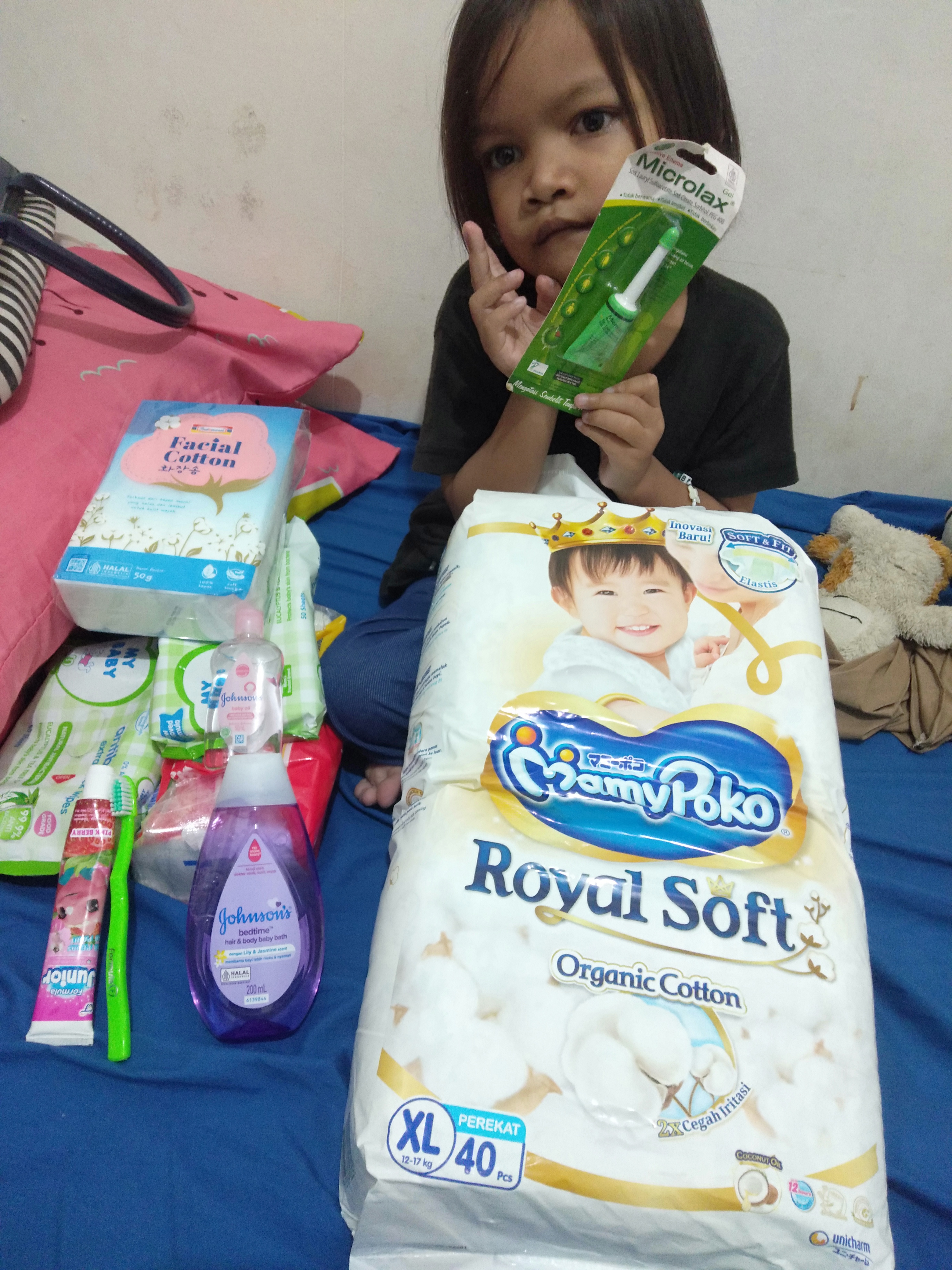 Bantuan dana dari TemanBaik sudah digunakan dengan baik untuk membeli 2 kaleng susu dan kemasan kotak susu formula, popok, biskuit, susu kotak cair, minyak angin, dan suplemen vitamin.