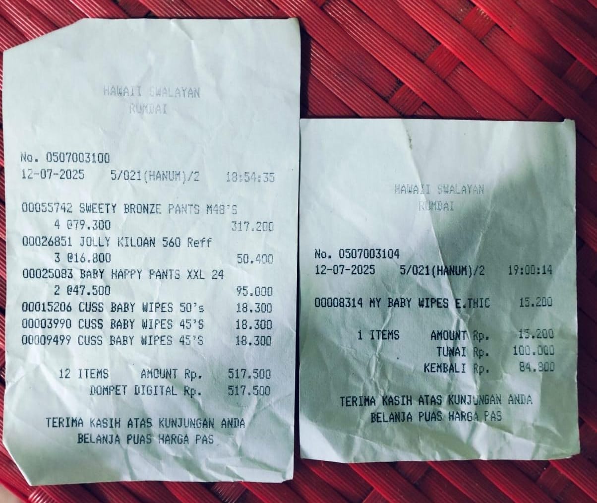 Dana digunakan untuk 1. Susu pediacomplete Rp449.300 x 4 kaleng = Rp1.797.000 2. Minyak Telon Rp40.000 x 2botol = Rp80.000 3. Tisu kering Rp20.0002025-06-23 10:02:35