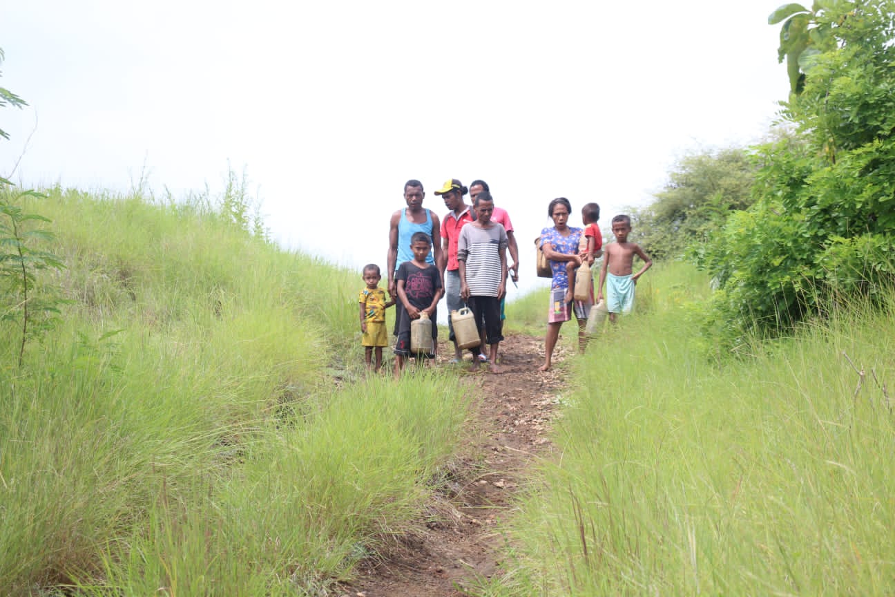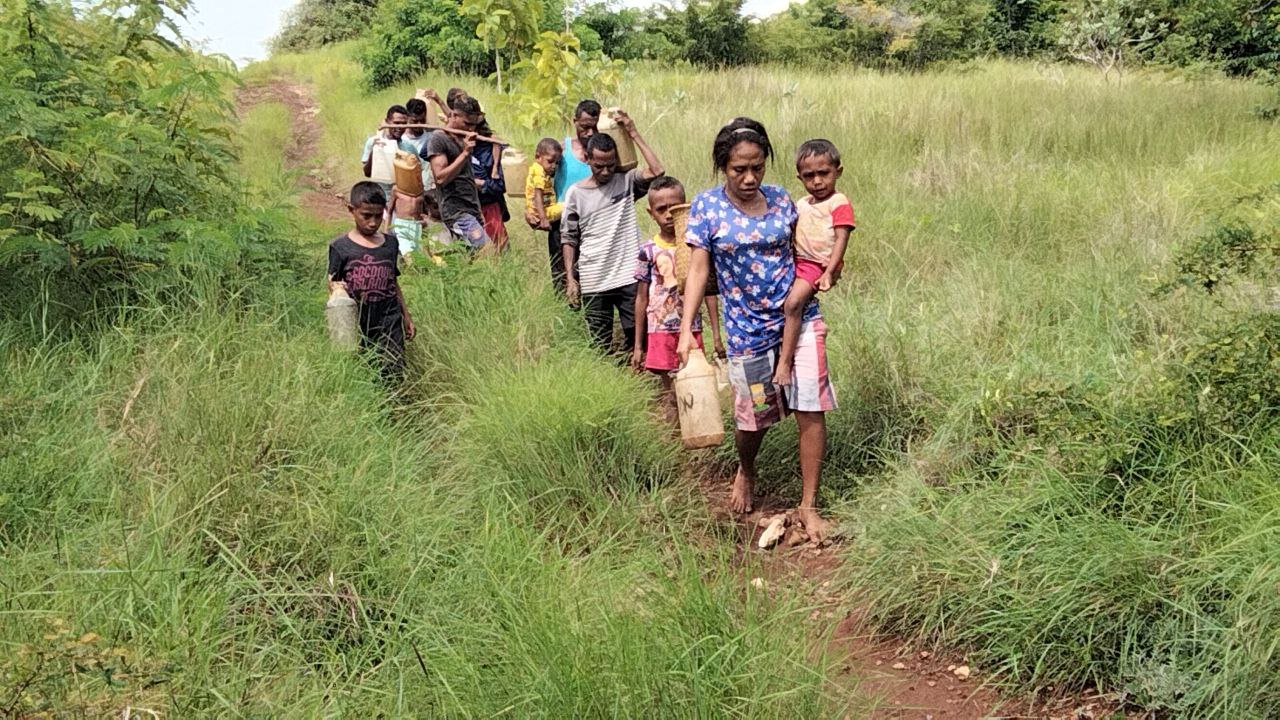 Lagi haus-hausnya, tapi air habis dan harus jalan kaki dulu 3 kilometer buat ambil air, kebayang? Itulah yang kami alami di sini. Jarak sumber air satu-satunya sejauh itu.