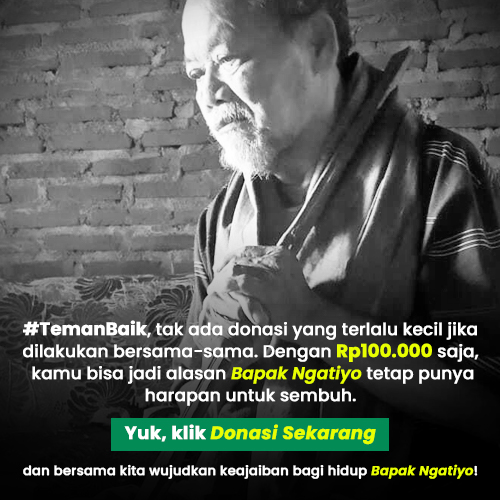 #TemanBaik, tak ada donasi yang terlalu kecil jika dilakukan bersama-sama. Dengan Rp100.000 saja, kita bisa jadi alasan Bapak Ngatiyo tetap punya harapan untuk sembuh. Yuk, klik Donasi Sekarang dan bersama kita wujudkan keajaiban bagi hidup Bapak Ngatiyo!