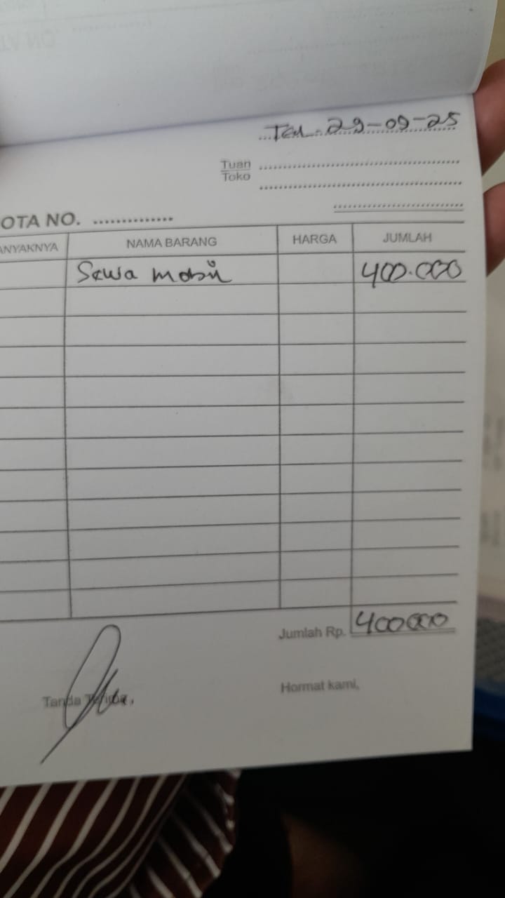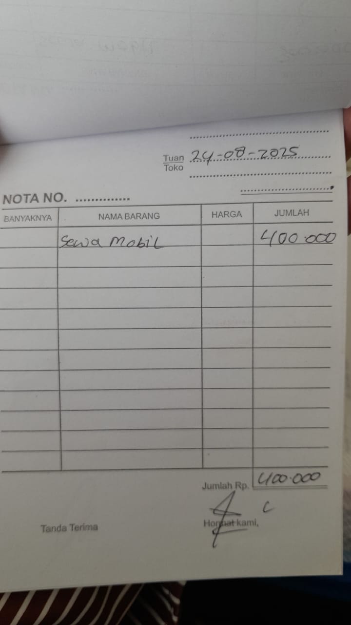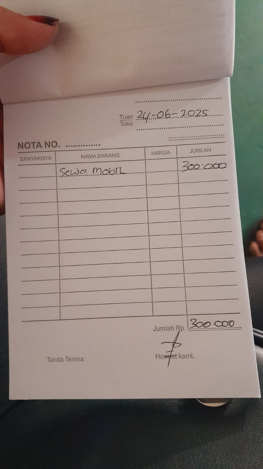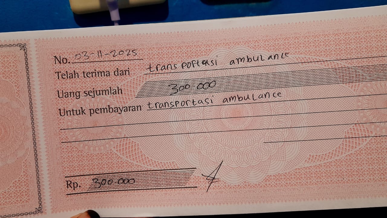Dana digunakan untuk Transportasi sewa mobil dan bensin untuk kontrol RS2025-11-03 09:19:52
