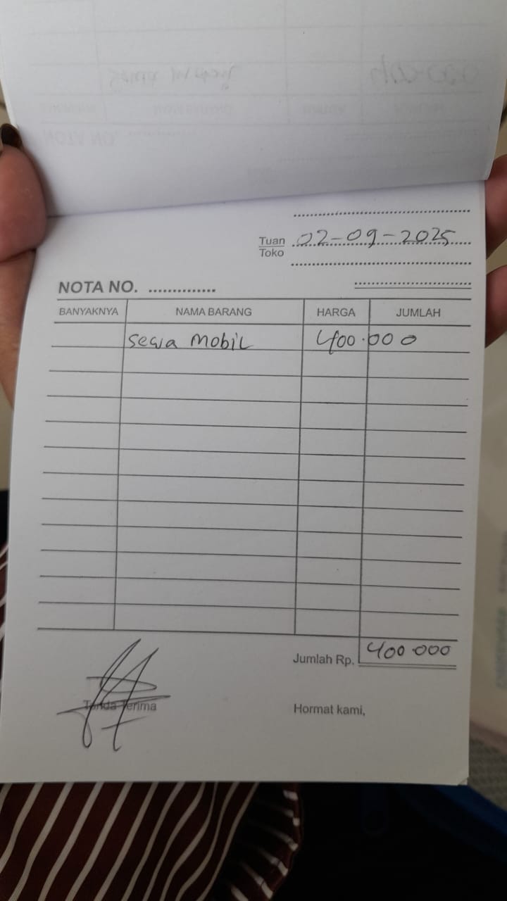 Dana digunakan untuk 1. Sewa mobil dari bogor ke RS cikarang Rp300.000 2. Beli bensin transportasi Rp150.0002025-08-26 10:28:34
