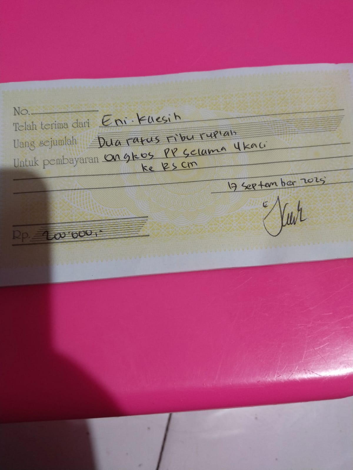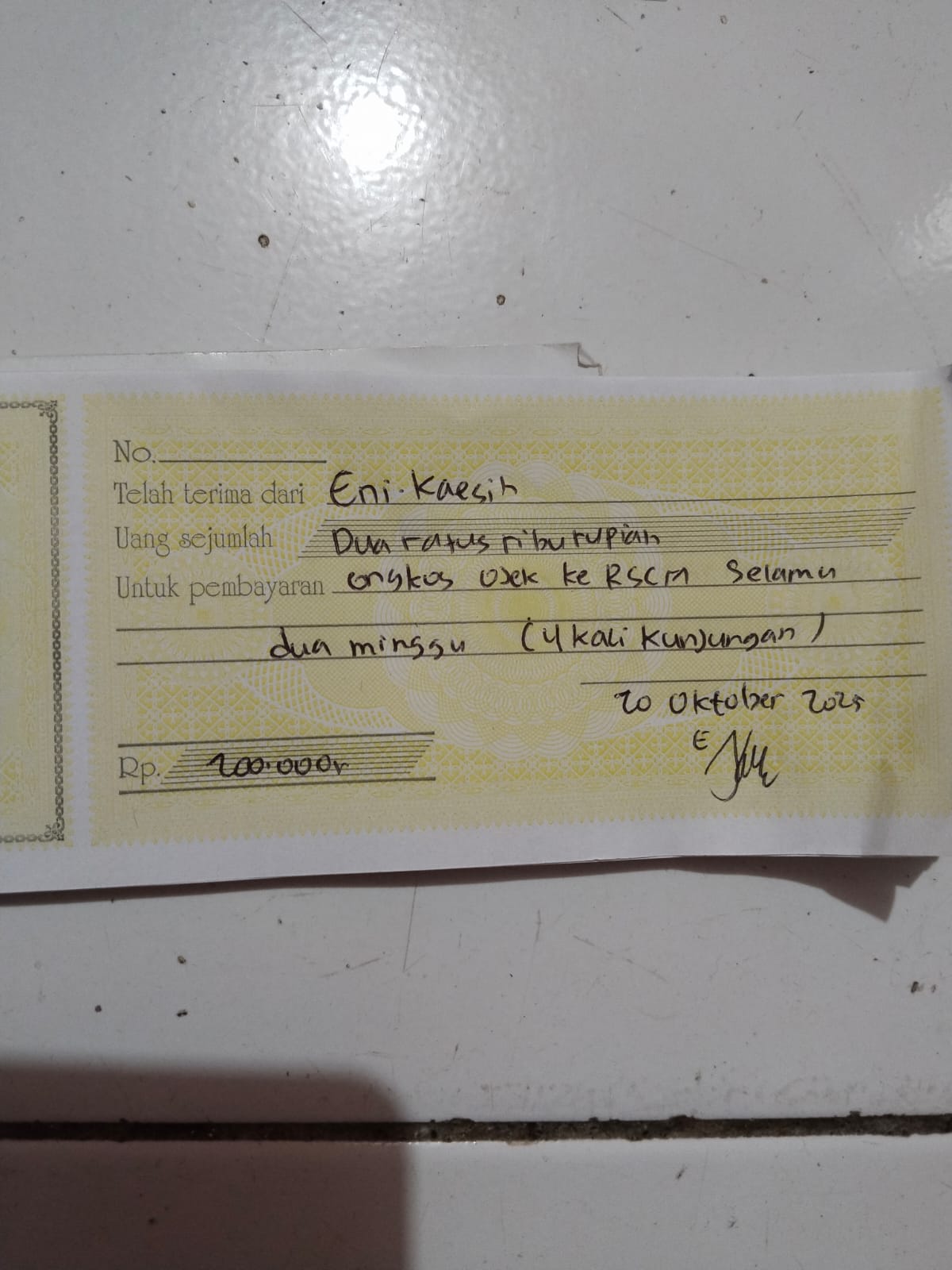 Ongkos PP ke RSCM-Rp50.000 × 4 kunjungan = Rp200.000
