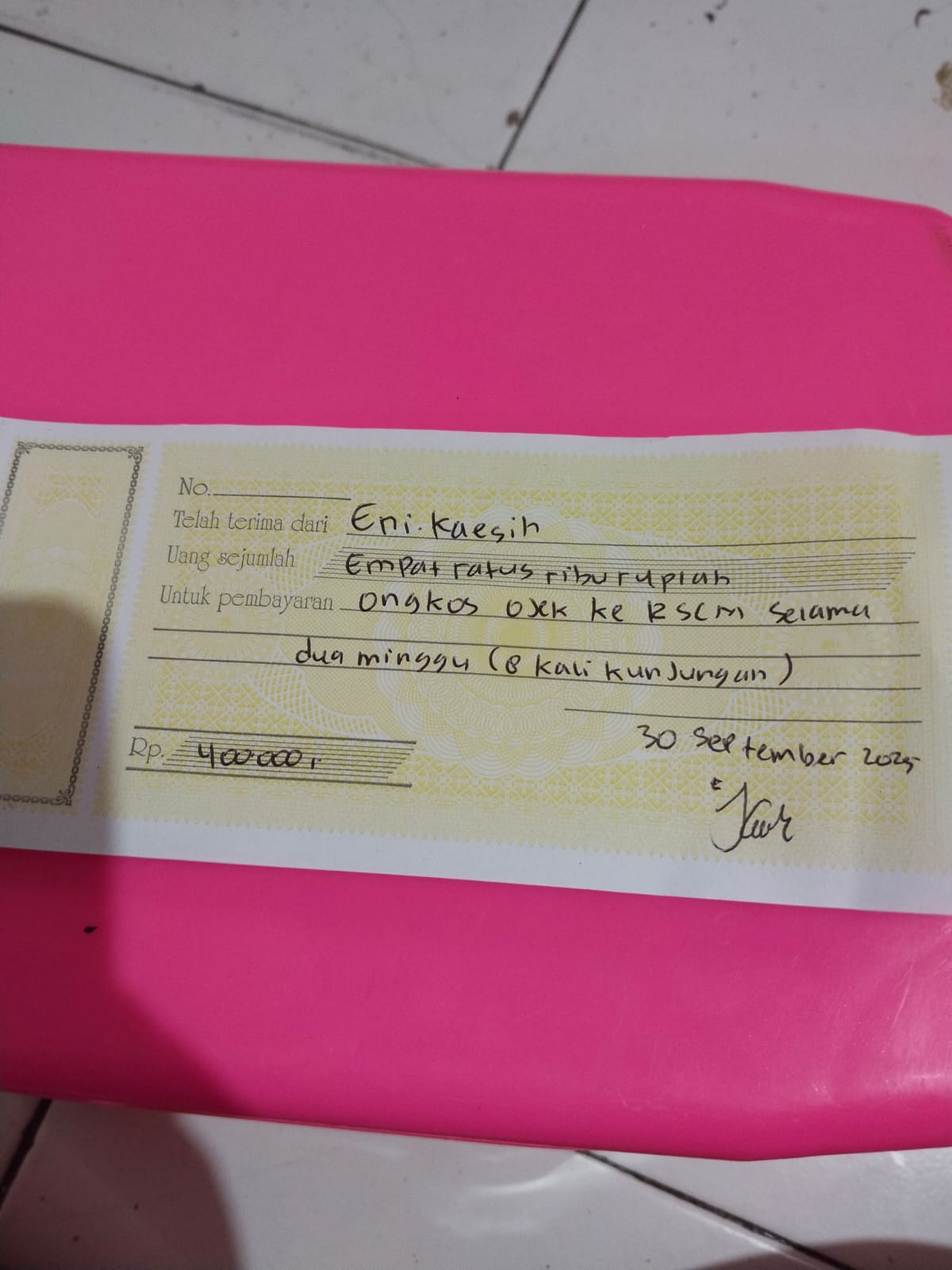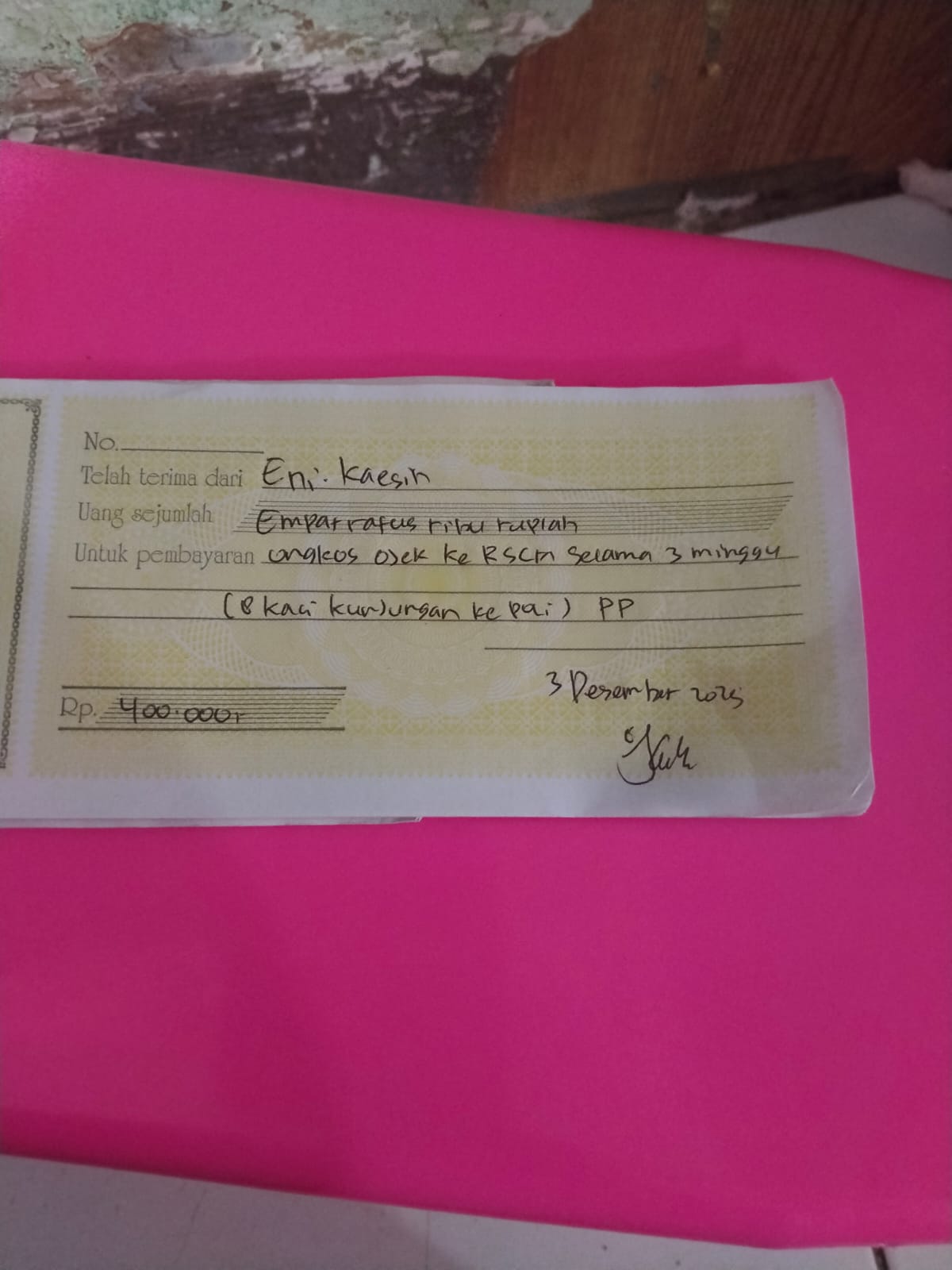 Ongkos ojek ke RSCM (PP 8 kali kunjungan) 8 × Rp50.000 = Rp400.000