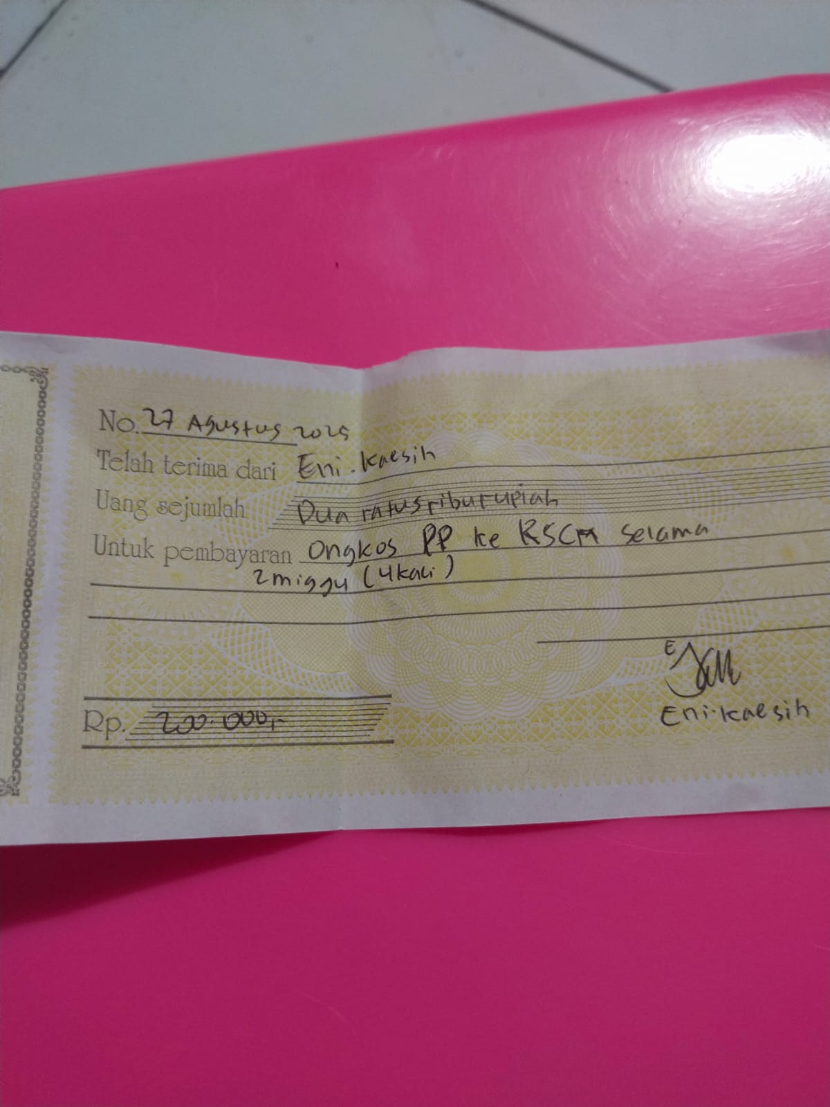 Selain itu, anakku kami masih membutuhkan biaya untuk ongkos membawanya ke rumah sakit dari Jakarta Timur ke Jakarta Pusat, obat yang tidak dicover BPJS, vitamin, susu, dan kebutuhan lainnya.