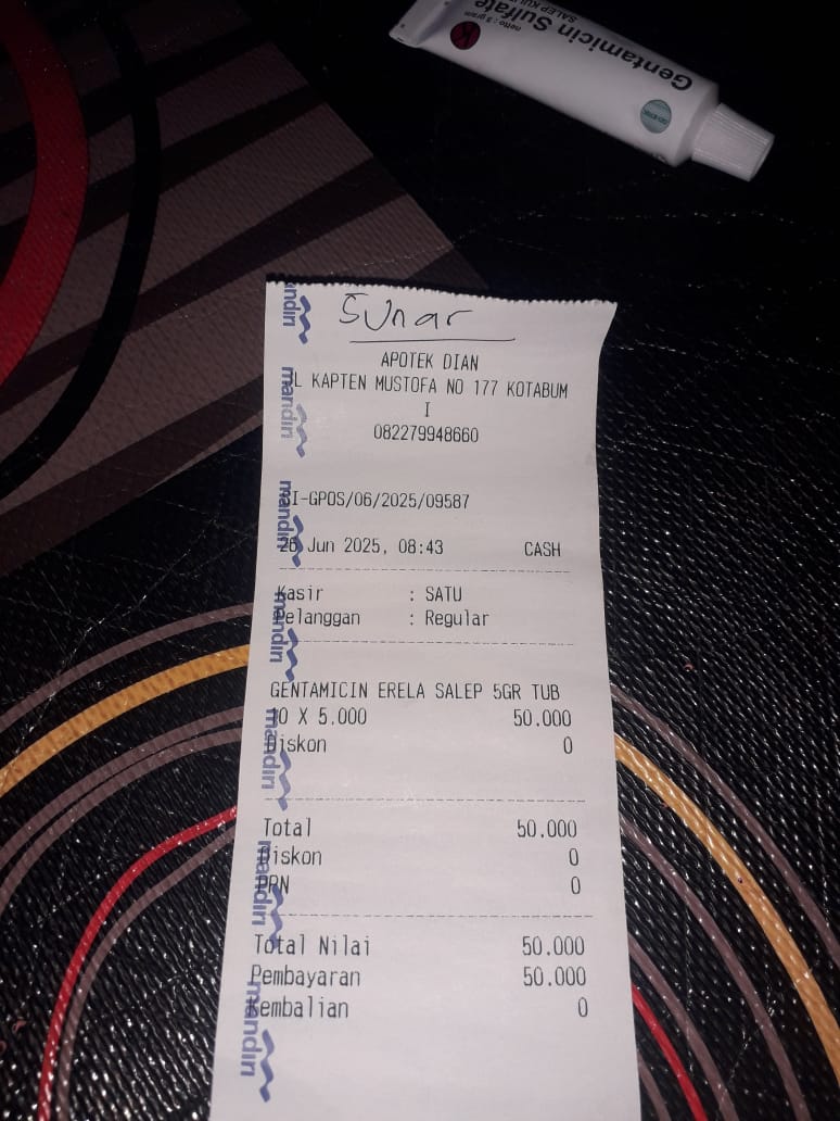 Untuk digunakan membeli Povidone iodine 1 ltr Rp 100.000 Plaster 1 buah Rp 25.0002024-09-02 10:41:45