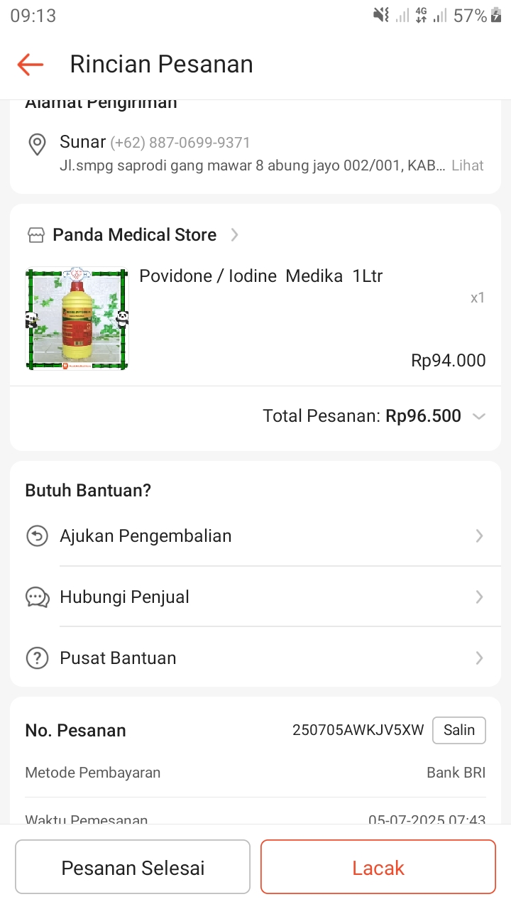 Dana digunakan untuk pembelian iodosorb powder Rp150.000 x 3 pcs = Rp450.000.2025-01-31 09:04:15