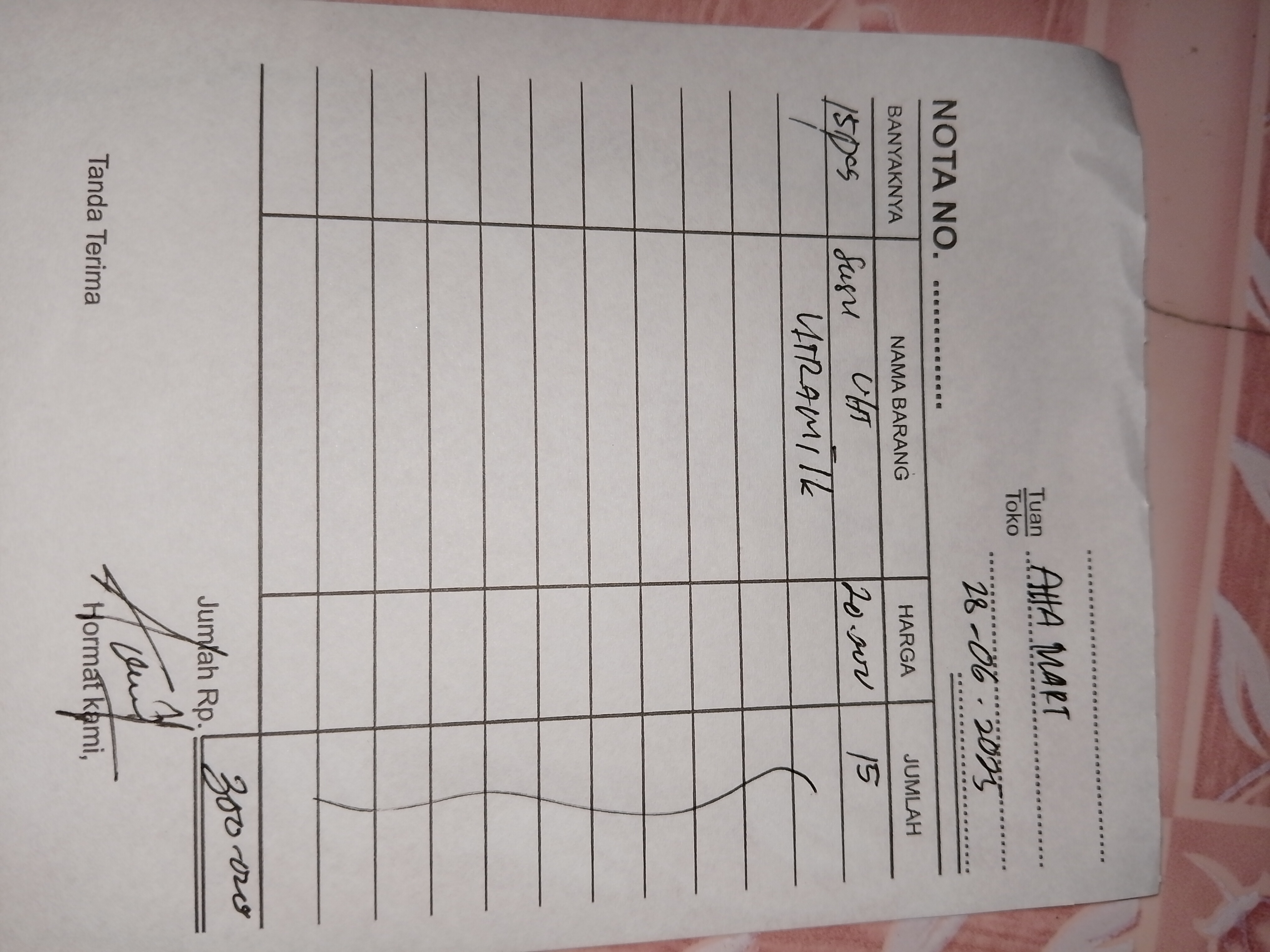 Dana digunakan untuk Susu UHT Rp20.000 x 15pcs = Rp300.0002025-06-25 10:11:10