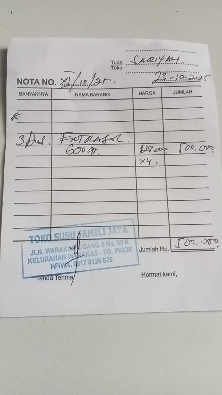 Dana digunakan untuk Susu entrasol gold 600 g Rp125.000x 4 dus = Rp500.0002025-10-21 10:30:06