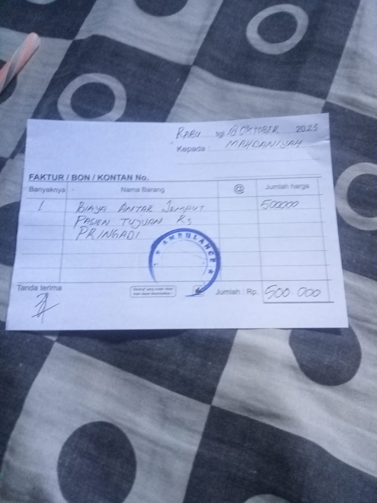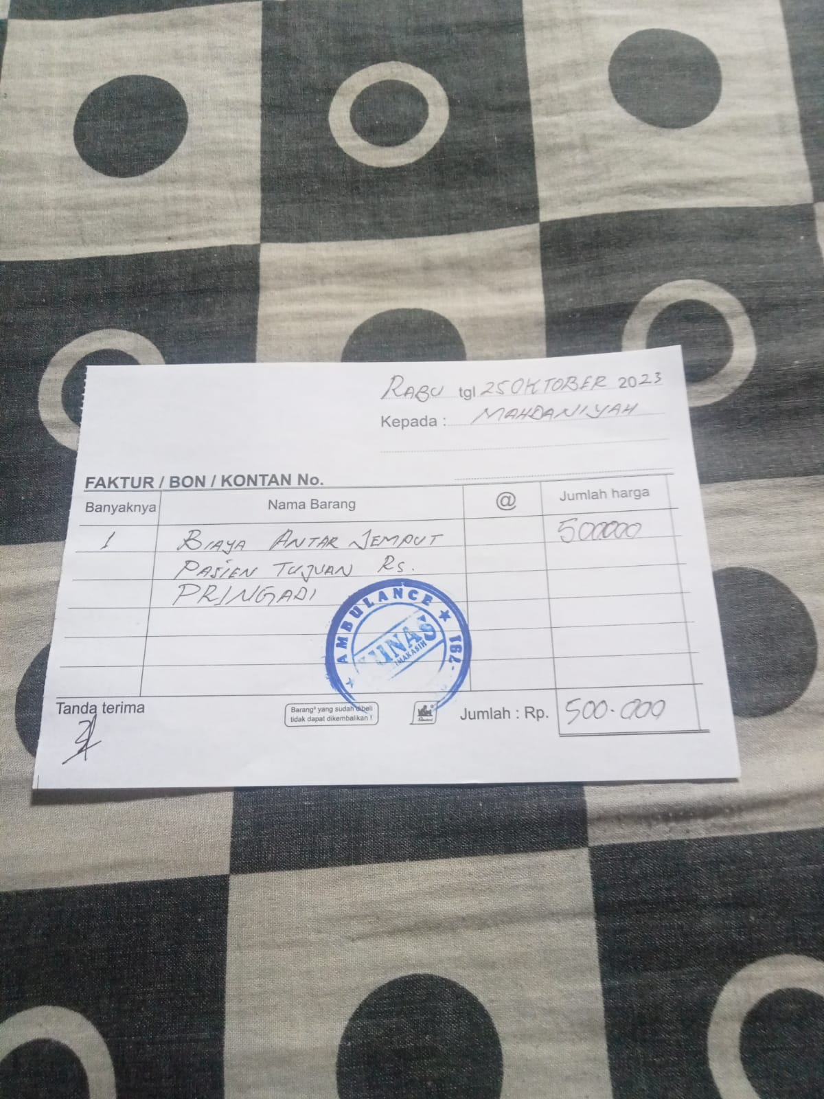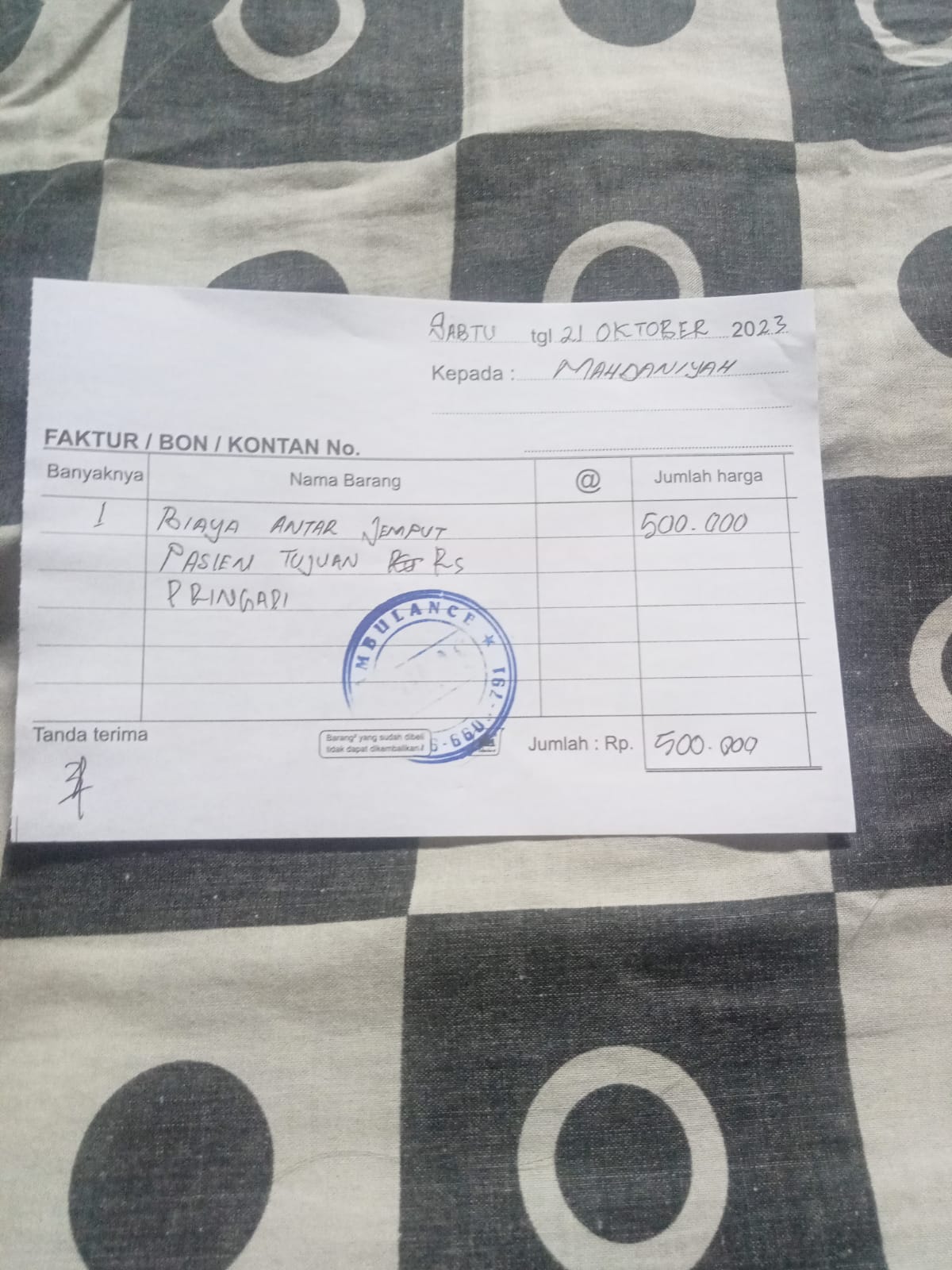 Dana Digunakan Siti Untuk Biaya Ambulance Ke Rumah Sakit