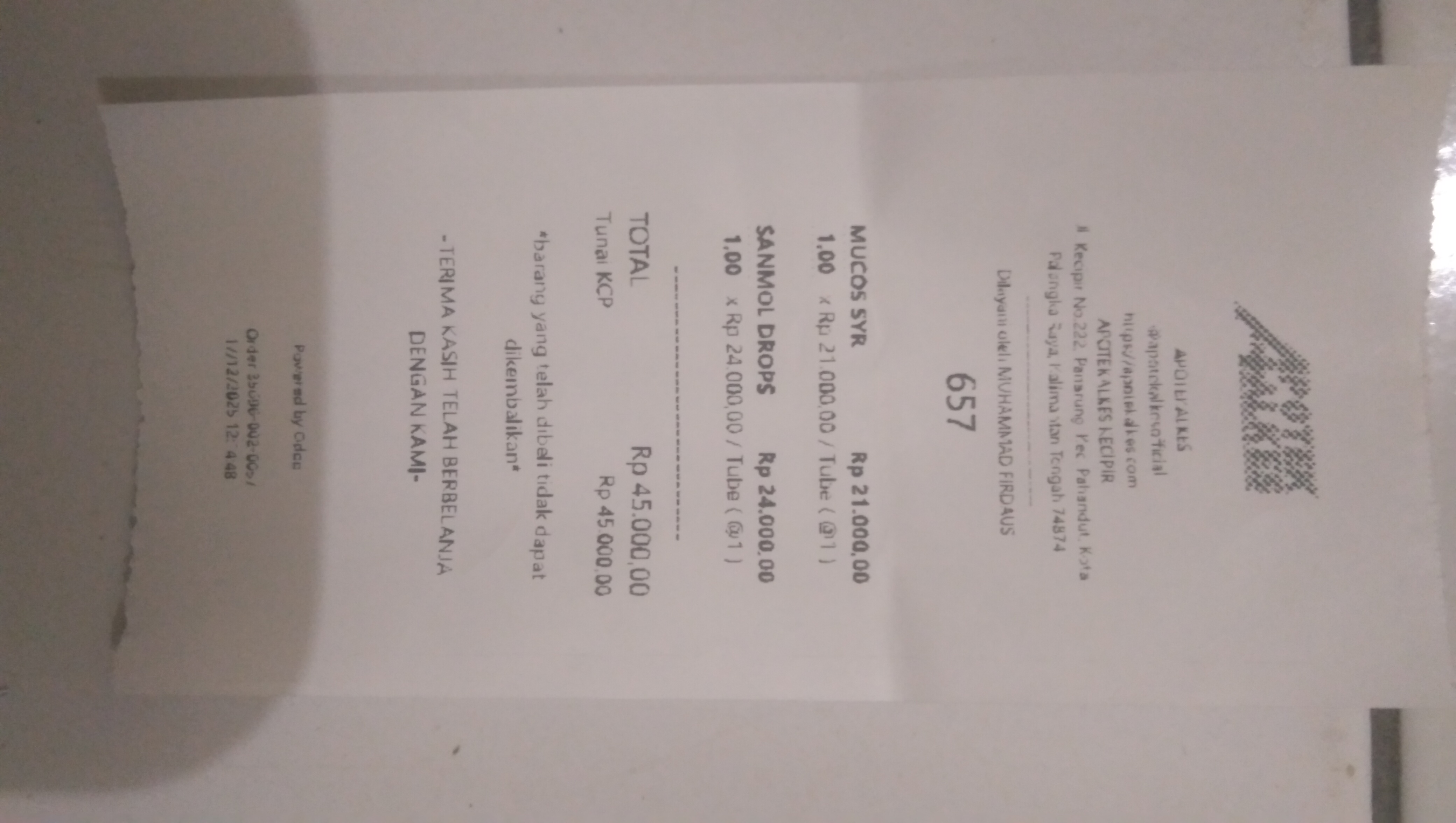 Dana digunakan untuk 1. Susu vidoran 925 gram Rp75.000 × 2 kotak =Rp150.000 2. Popok baby happy Rp47000 × 2 = Rp94.000 3. Sanmol drop Rp30.000 × 1 = Rp30.000 4. Ambroxol Rp55.000 ×1 = Rp55.000 5. Tisu kering Rp12.000 × 2 = Rp24.000 6. Tisu basah Rp10.000 × 2 = Rp20.0002025-12-17 14:17:50