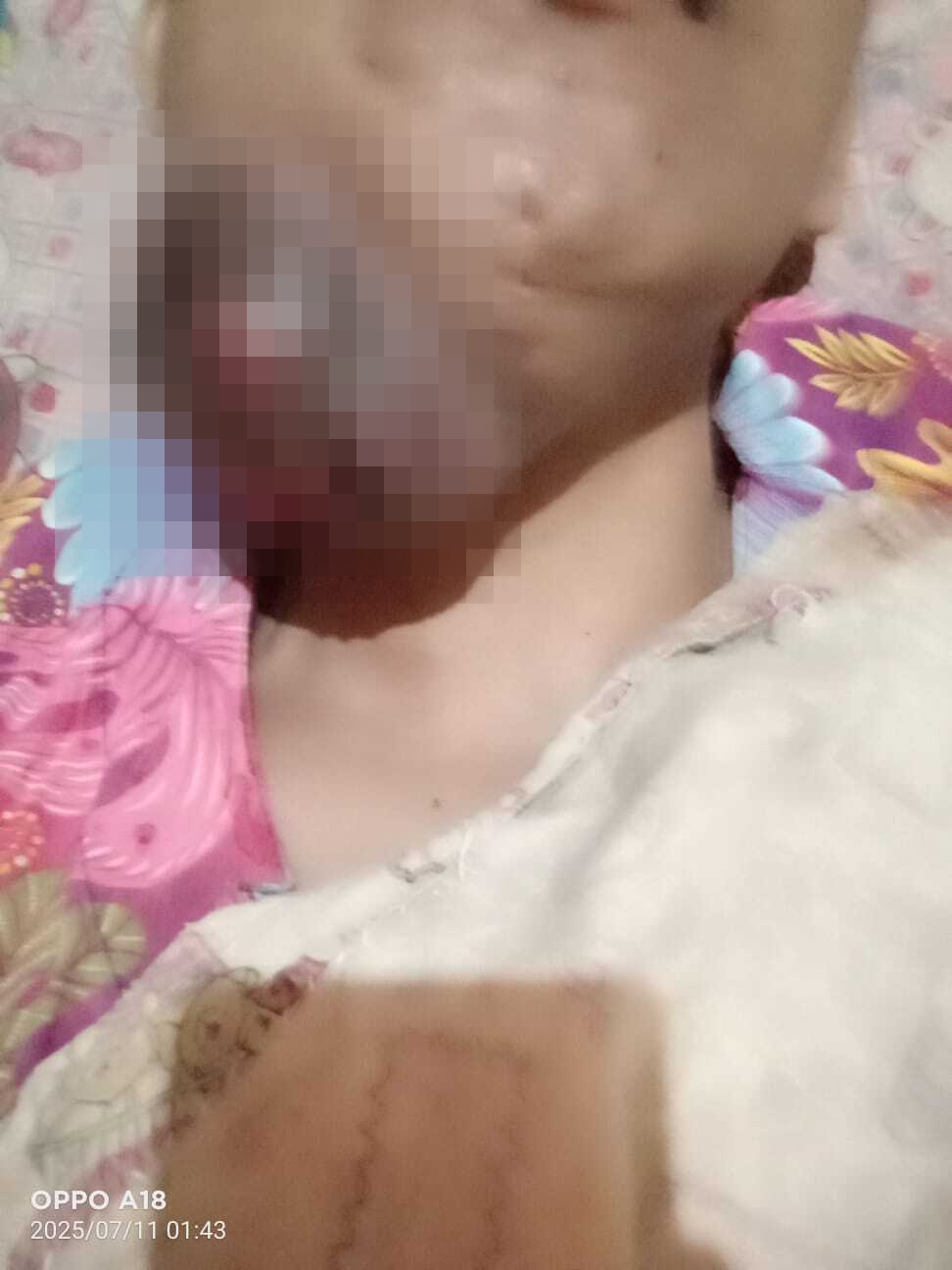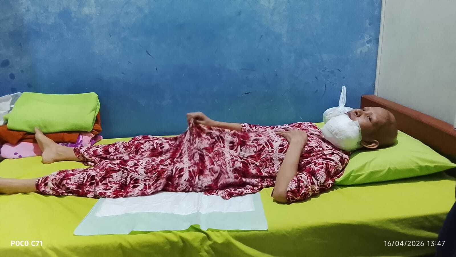 “Gumpalan darah terus mengalir dari tumor ganas di dagu Diyana! Bantal yang Ia tiduri sampai kuyup berubah merah. Tapi Ia hanya terbaring diam, menatap langit-langit dengan tatapan kosong. Namun, air matanya diam-diam mengalir dalam keheningan, akibat rasa sakit yang begitu hebat. ”