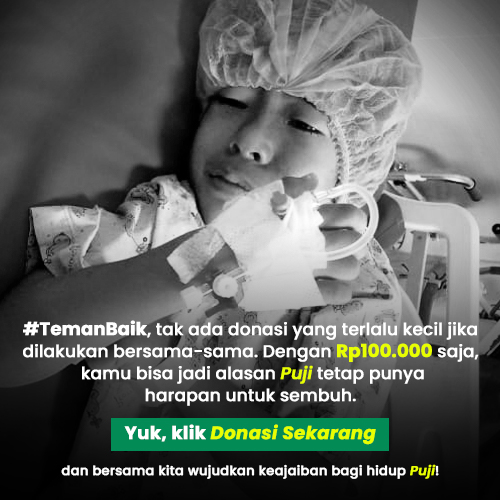 #TemanBaik, tak ada donasi yang terlalu kecil jika dilakukan bersama-sama. Dengan Rp100.000 saja, kita bisa jadi alasan Puji tetap punya harapan untuk sembuh. Yuk, klik Donasi Sekarang dan bersama kita wujudkan keajaiban bagi hidup Puji!