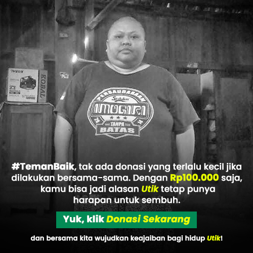 #TemanBaik, tak ada donasi yang terlalu kecil jika dilakukan bersama-sama. Dengan Rp100.000 saja, kita bisa jadi alasan Utik tetap punya harapan untuk sembuh. Yuk, klik Donasi Sekarang dan bersama kita wujudkan keajaiban bagi hidup Utik!