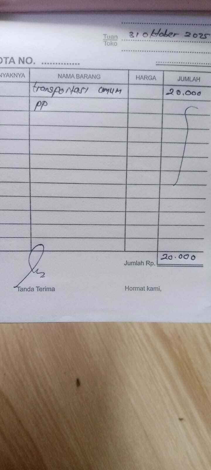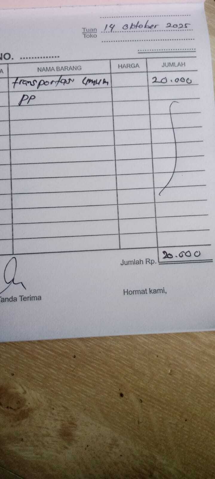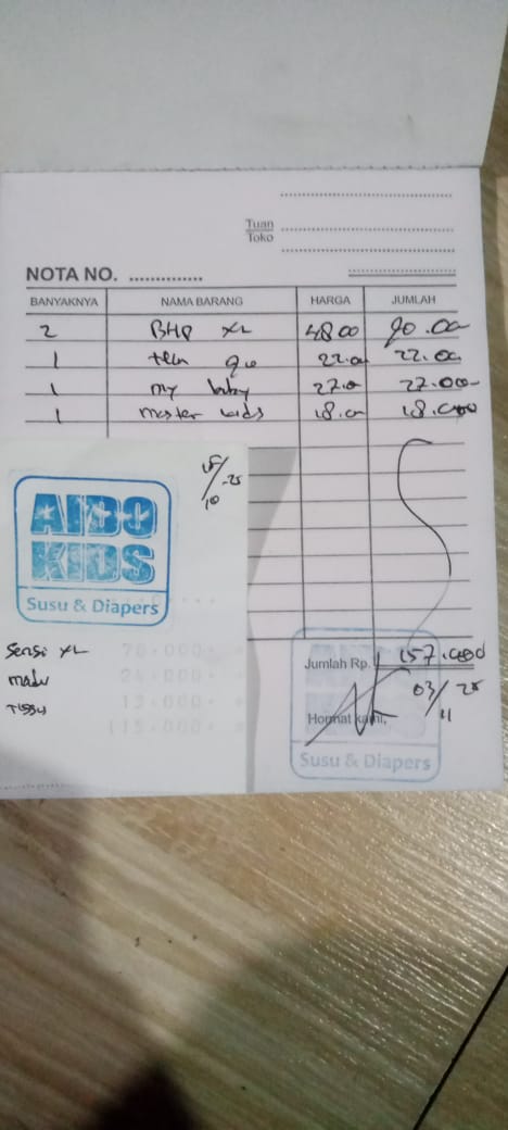 Dana digunakan untuk 1. Pempers XL baby heppy Rp 66.000 x 2 ball = Rp 132.000 2. Pampers My baby Rp 26.000 3. Minyak telon Rp 22.000 4. Transportasi Angkutan umum kontrol Rp100.000 5. Konsumsi kontrol ke rs 300.0002026-01-09 09:57:46