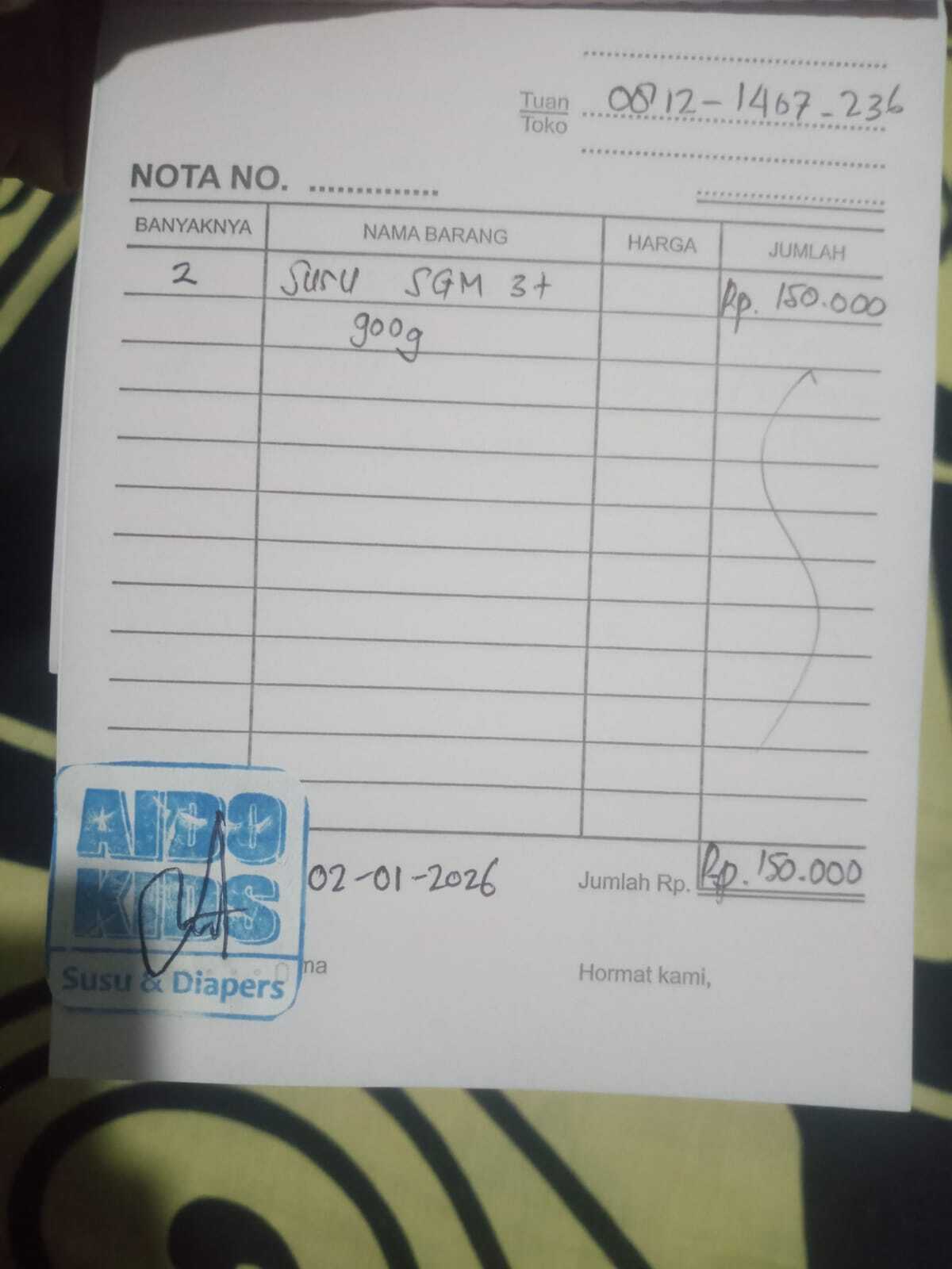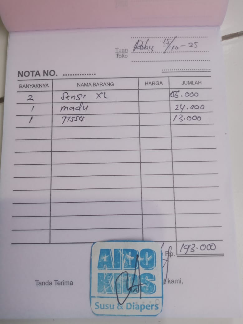 Dana digunakan untuk 1. Pampers many popok 2 ball Rp180.000 2. Susu sgm 3+1 Rp110.000 3. Transportasi ke kerta dan Angkot ke RS cipto. Rp100.000 4. Konsumsi kontrol Rp179,5002025-10-09 10:21:17