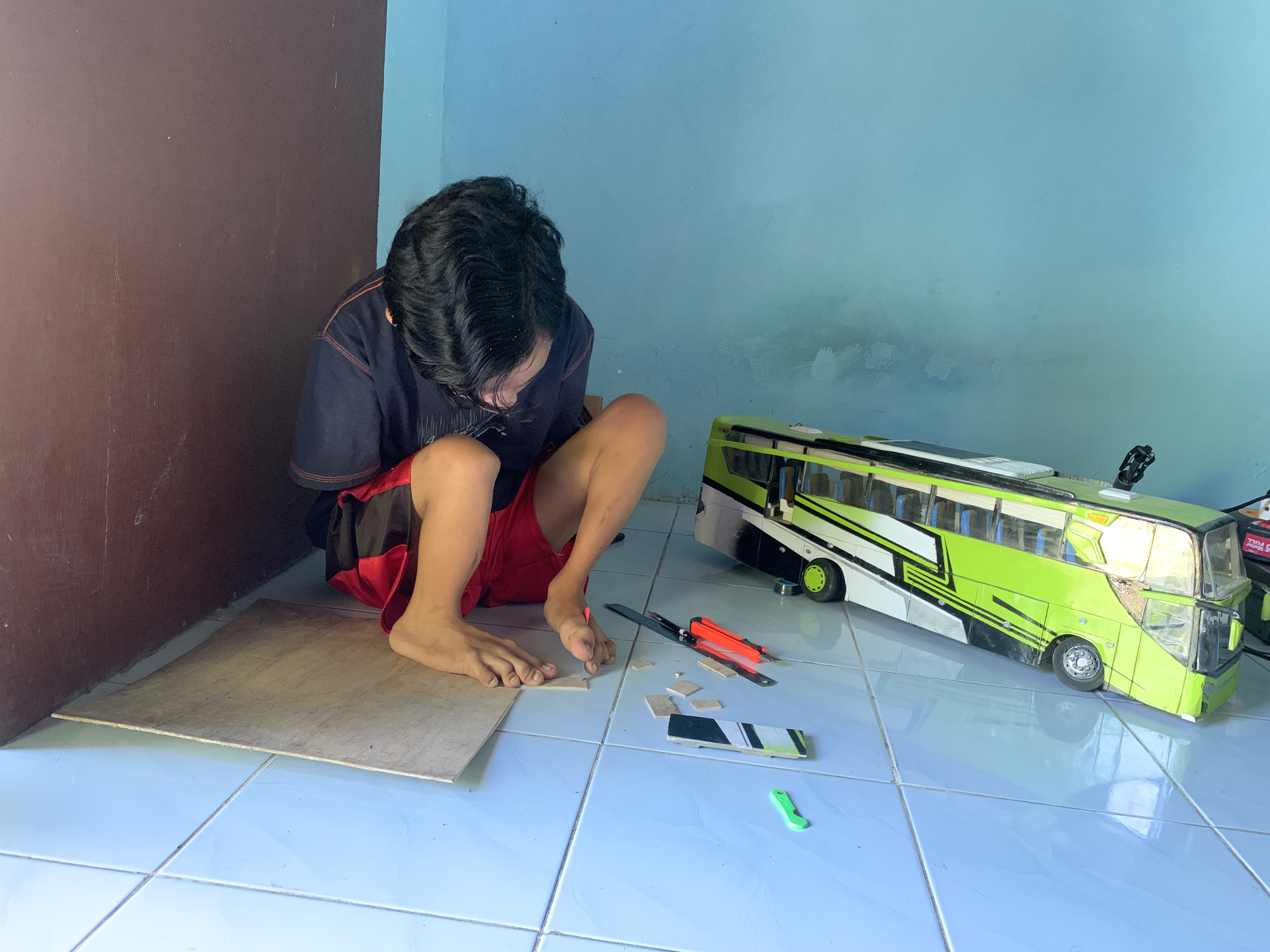 Mereka sering melihatku banyak menghabiskan waktu untuk menggambar dan memotong bahan-bahan kecil, lalu aku rakit menjadi miniatur mobil yang bagus dan detil.