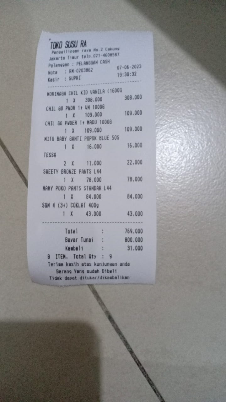 Dana digunakan untuk 1. Susu Morinaga 1000 gram 2 kotak Rp300.000 2. Pampers Mamypoko L52 Rp76.000.2023-07-26 15:39:21