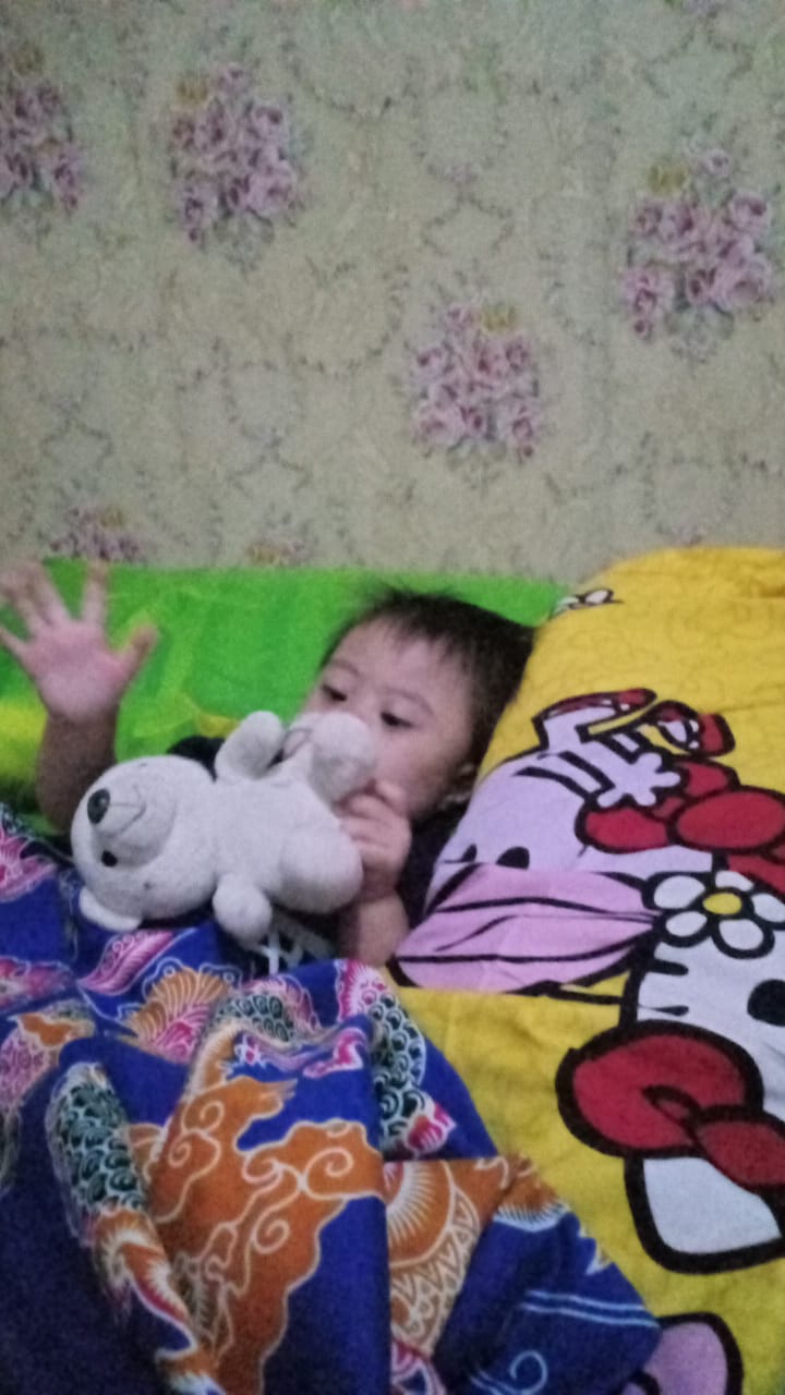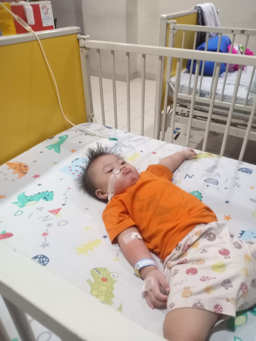 Aku ibunya Zulfahri mau mengabarkan kondisi anakku terkini. Anakku baru bisa duduk, tapi sering sesak napas. Badannya juga lagi merah-merah karena gatal.