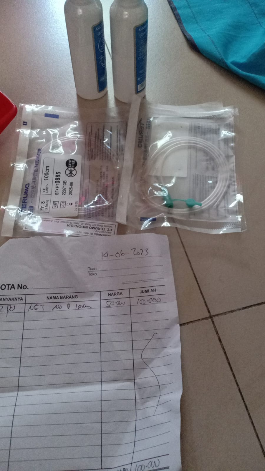 Dana digunakan untuk 1. Susu Morinaga 1600 gram 270.000 x 3= Rp810.000 2. Pampers Mamypoko ukuran L 107.000 x 2= Rp214.000 3. Tisu basah 2 buah Rp30.000 4. Tisu kering 2 buah Rp24.000 5. Selang NGT 2 buah Rp69.000 6. Sabun antiseptik Rp12.000.2023-06-07 16:10:43