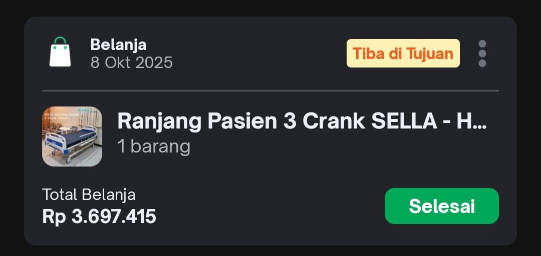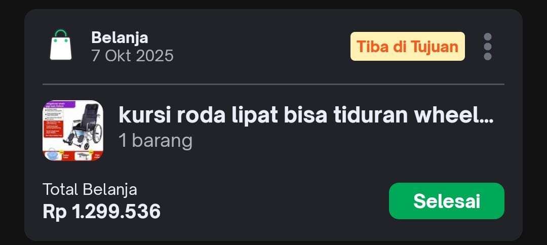 Dana telah digunakan untuk membeli alat-alat kebutuhan aktivitas Bapak Khoerudin, yang saat ini tengah berjuang melawan komplikasi penyakit stroke, infeksi paru-paru, dan gangguan lambung kronis.