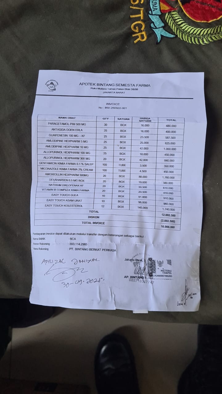 Pencairan Dana Rp 10.000.000Dana digunakan untuk pembelian obat-obat kebutuhan persediaan di klinik terapung kodim 0906/kr di kartanegara2025-09-24 10:11:31
